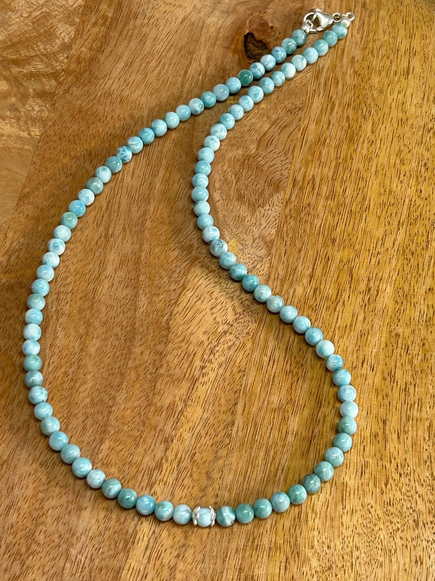 Larimar: baut Selbstheilungskräfte des Körpers auf; stimuliert die Gehirntätigkeit; beruhigt bei Hals- und Mandelentzündungen; stärkt die Knochen und fördert das Wachstum der Kinder; kann Asthma und Beklemmung lindern; hilft das eigene Leben selbst in die Hand zu nehmen; hilft den eigenen Körper und die gegebene Situation anzunehmen und bei Heim- und Fernweh; stärkt die Selbstdisziplin; bringt innere Ruhe bei schwerer Belastung