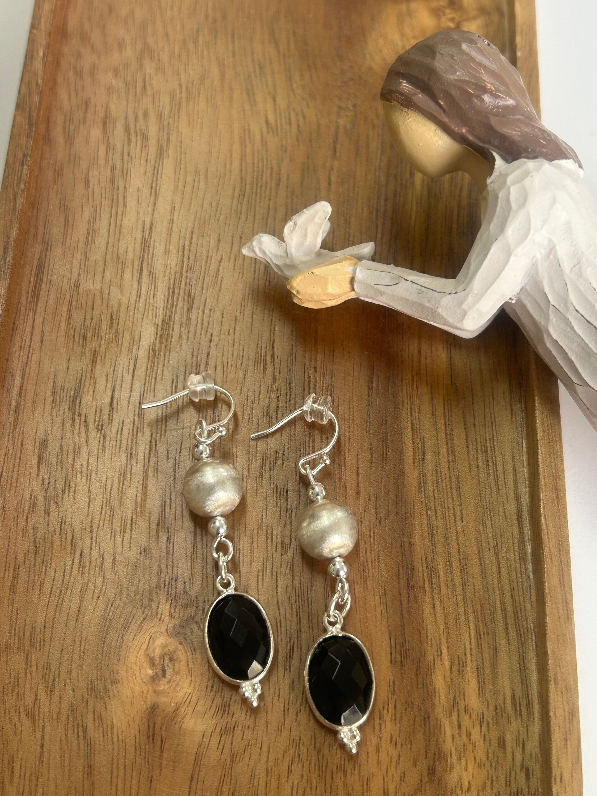 Länge: 5cm (Elemente aus Silber 925; facettierter Onyx 18x11mm in Silber 925 eingefasst)