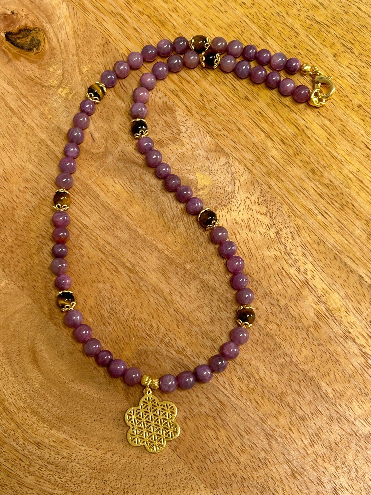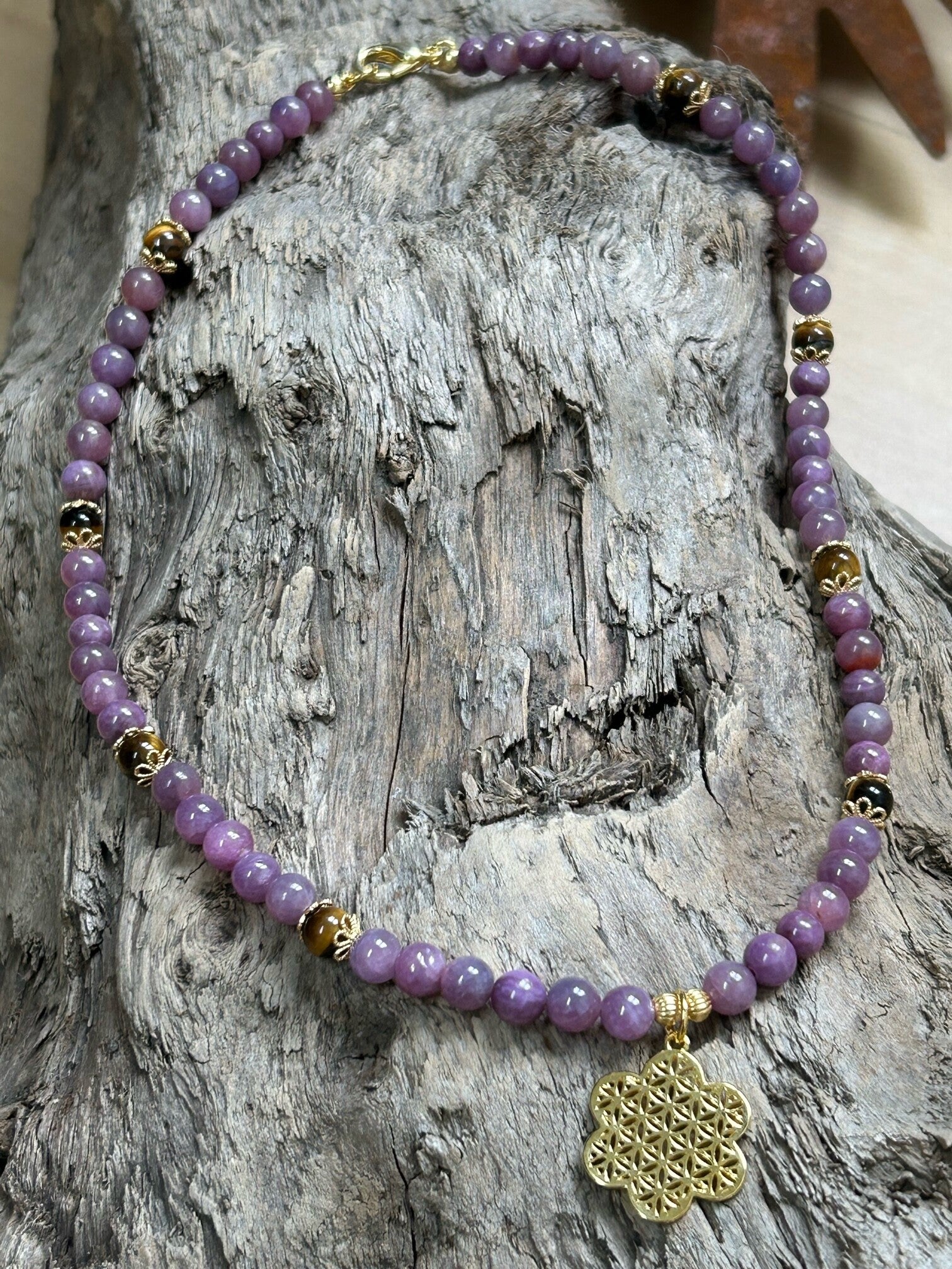 Länge auf dem Bild: 44cm (Deine Wunschlänge in den Kommentar eintragen und entsprechende Preisklasse wählen!); mit Silber 925, vergoldeten Perlkappen und Anhänger "Lebensblume; Kugeln 6mm