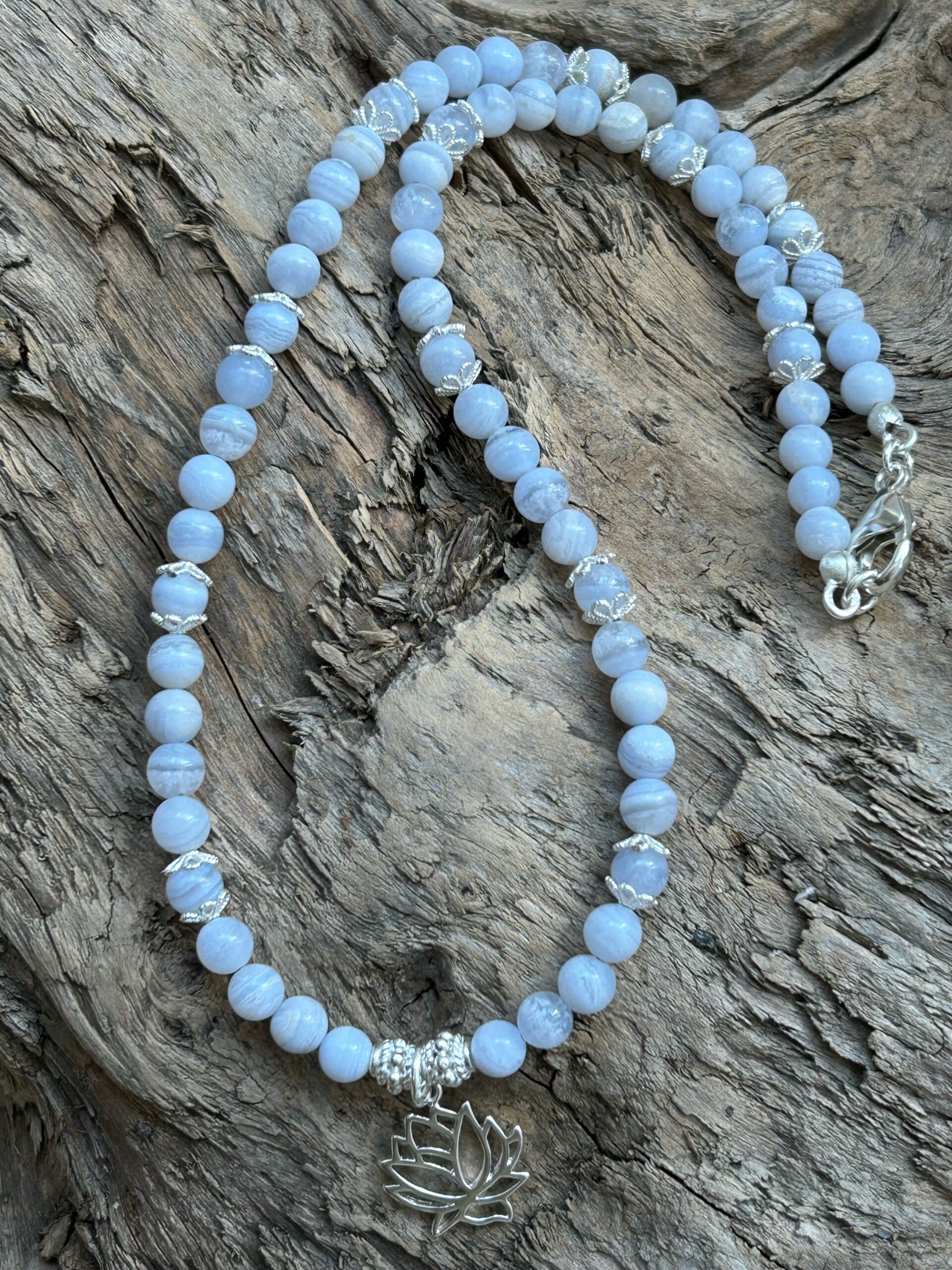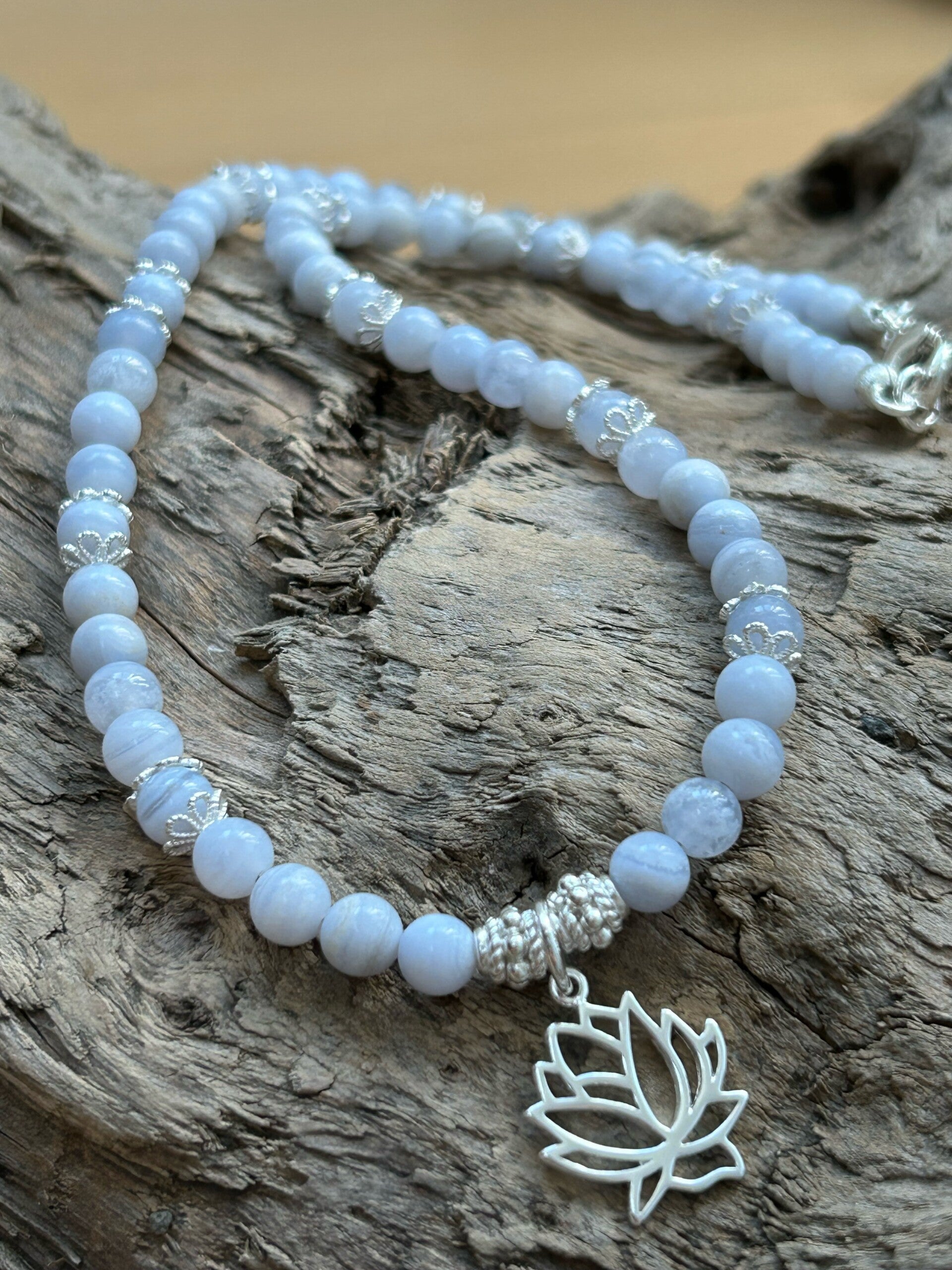 Länge auf dem Bild: 45cm (Deine Wunschlänge in den Kommentar eintragen und entsprechende Preisklasse wählen!); mit Silber 925 Zwischenteilen und Anhänger "Lotusblume"