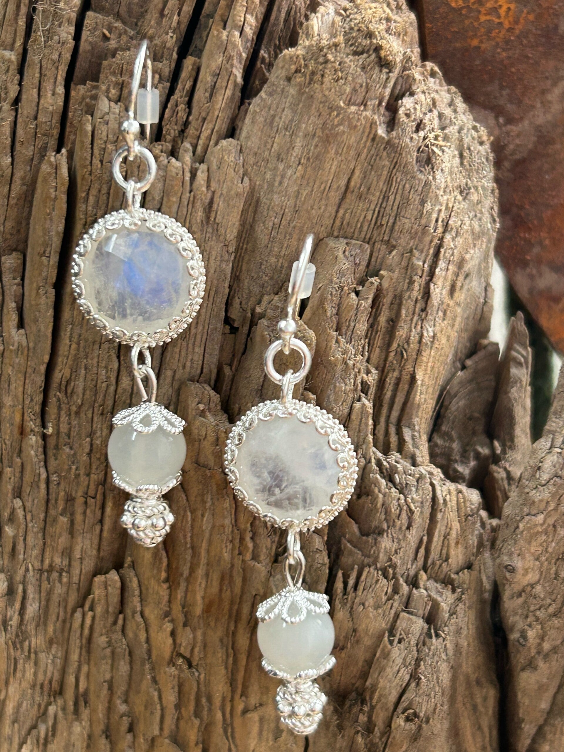 Mondstein: regt die Zirbeldrüse an und gleicht das hormonelle Geschehen an den Mondzyklus an; hilft bei Mondsüchtigkeit; harmonisiert die hormonelle Umstellung während der Pubertät, im Wochenbett und im Klimakterium; wirkt auf die Knochen, beugt Osteoporose vor; beeinflusst das Lymphsystem; gut bei hormonell bedingter Schilddrüsenfehlfunktion sowie Hauterkrankungen; regt die Milchproduktion an; hilft bei Ödemen und Warzen; verbessert die Traumerinnerung; wirkt beruhigend bei irrationalen Ängsten; mindert emotionale Konflikte und Gefühlskälte, Stress, Unausgeglichenheit; steigert das Gefühlsempfinden; erleichtert den Zugang zum Unterbewusstsein und hilft alle Emotionen zu integrieren; fördert Einfühlungsvermögen und die Verbindung mit den Kräften der Natur; weckt vielfältige Interessen und ermutigt, diese ausgiebig zu verfolgen; verbindet mit matriarchalem Wissen; ist einer der wichtigsten Frauenheilsteine