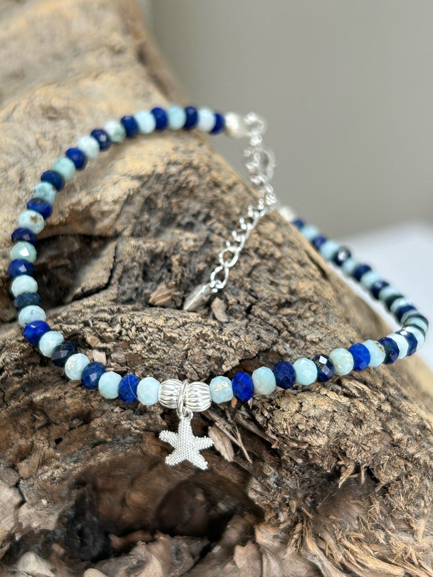 Hinweis: Silber 925 Anhänger "Seestern", Verlängerung mit Herz (bis 5cm) und Zwischenteile; facettierte Linsen 4mm