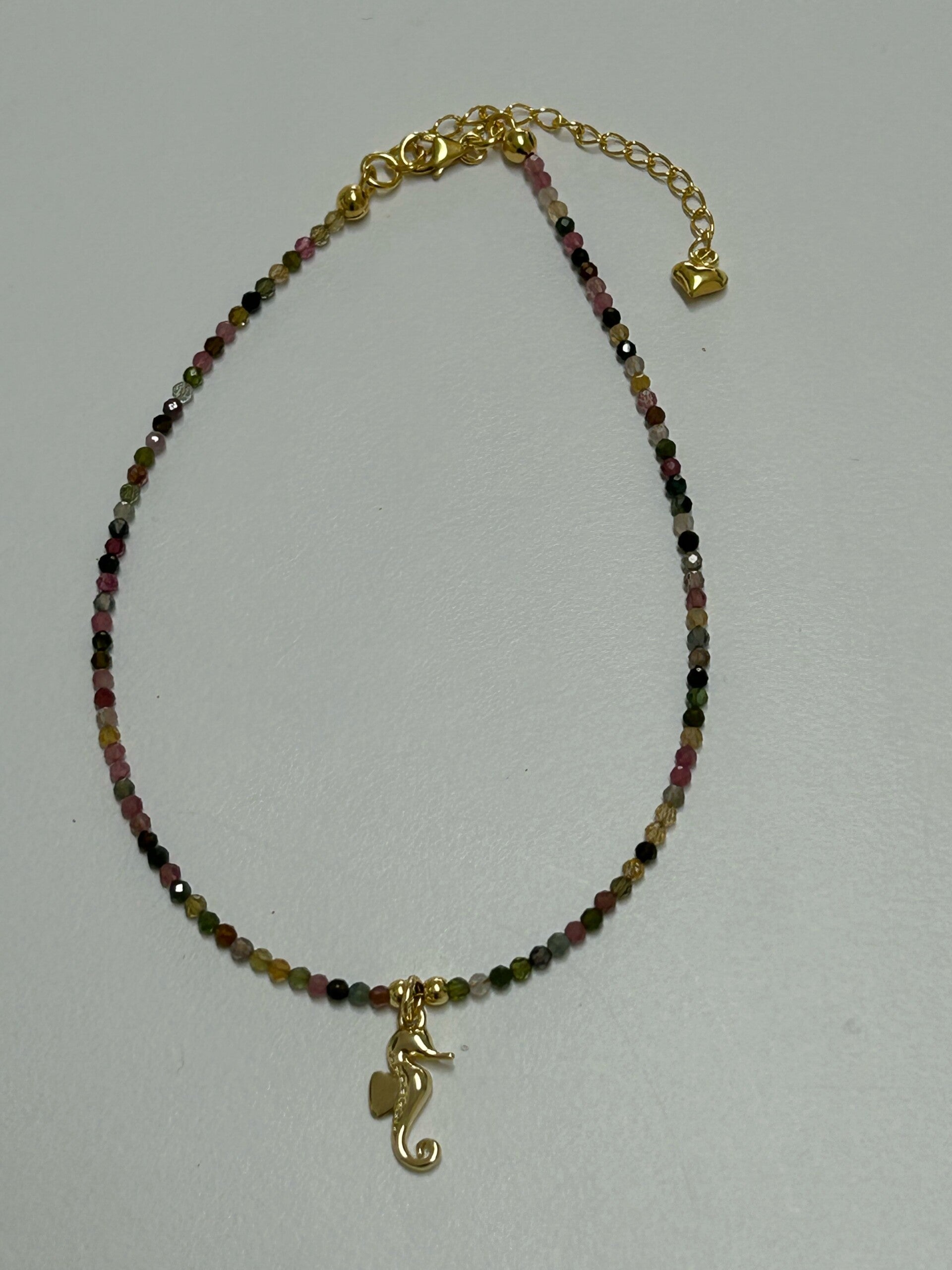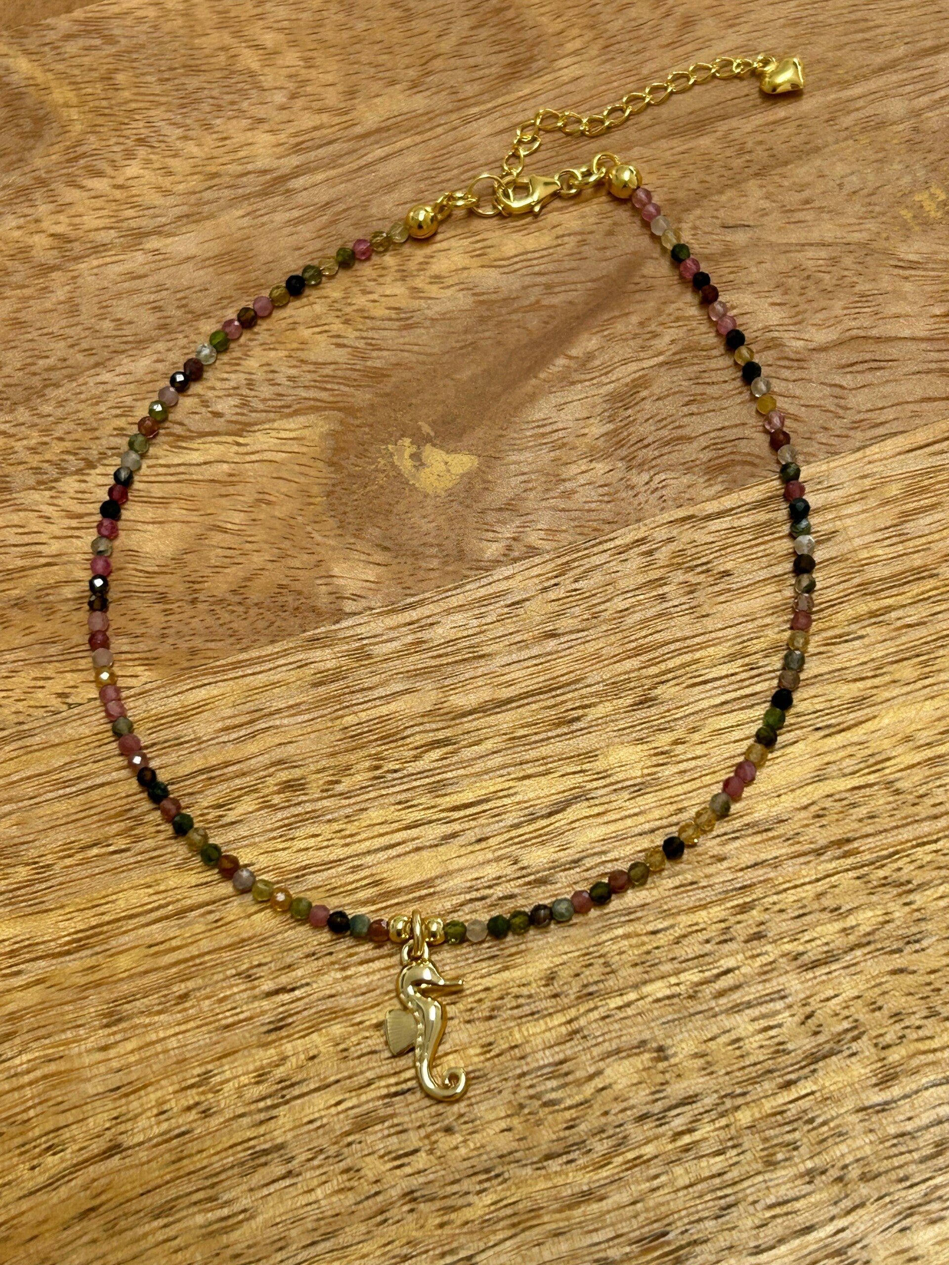 Hinweis: Silber 925 vergoldeter Anhänger "Seepferdchen" und Verlängerung mit Herz (bis 5cm); Kugeln facettiert 2mm