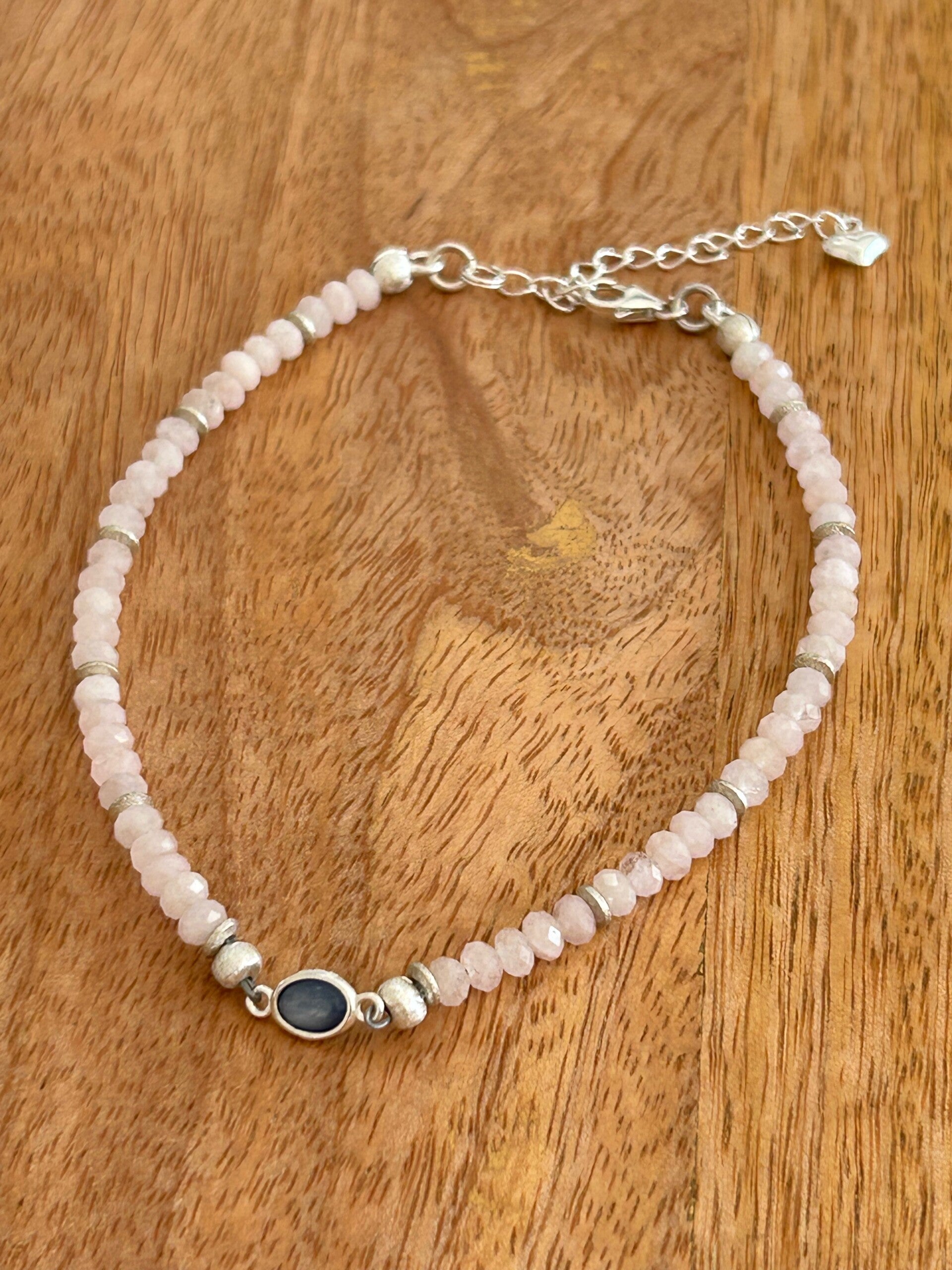 Hinweis: Silber 925 Verbinder, Verlängerung mit Herz (bis 5cm) und Elemente; facettierte Linsen 4mm; Verbinder mit Kyanit 12mm