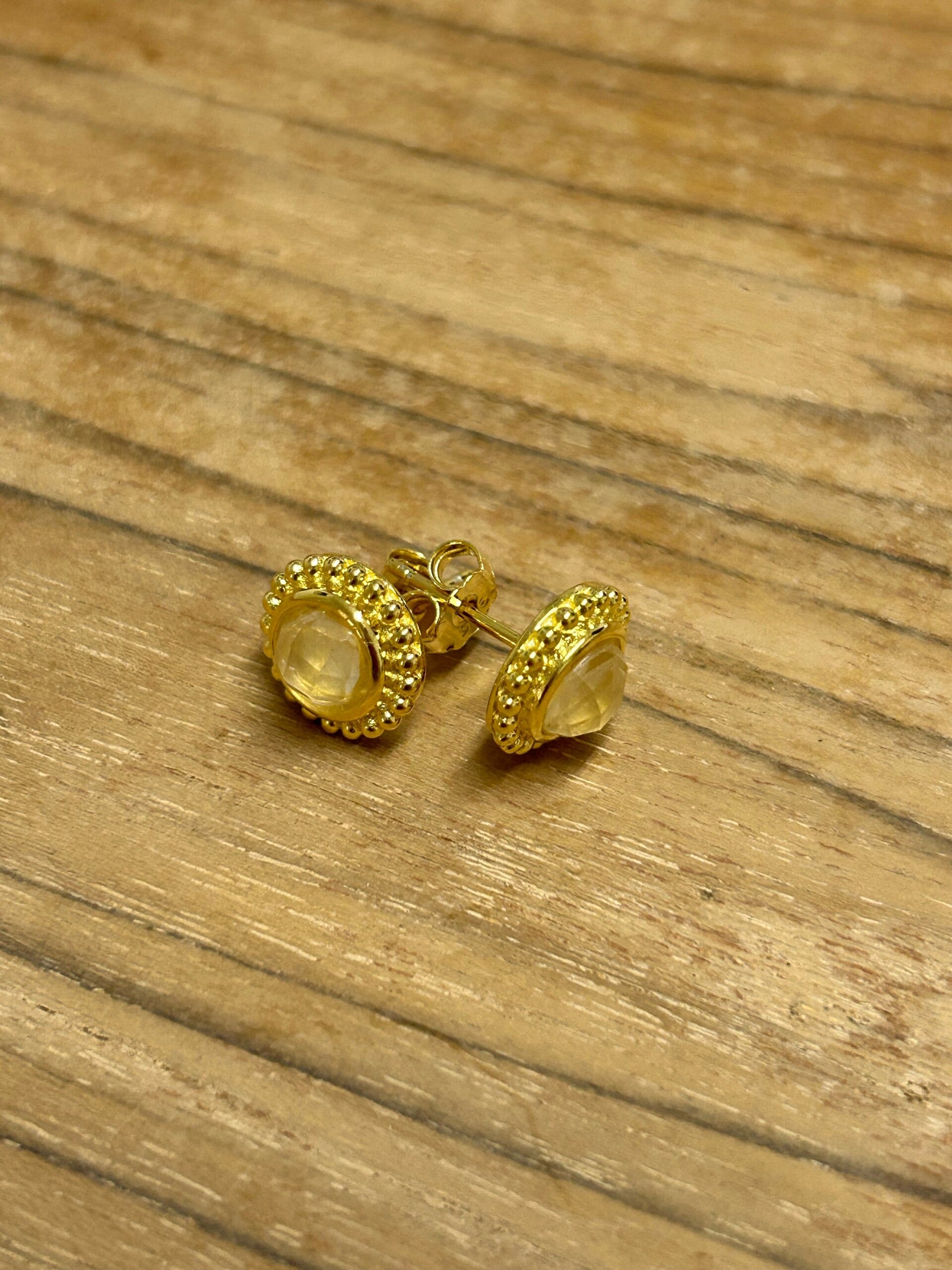 Ohrstecker Silber 925 vergoldet, mit facettiertem Regenbogen-Mondstein