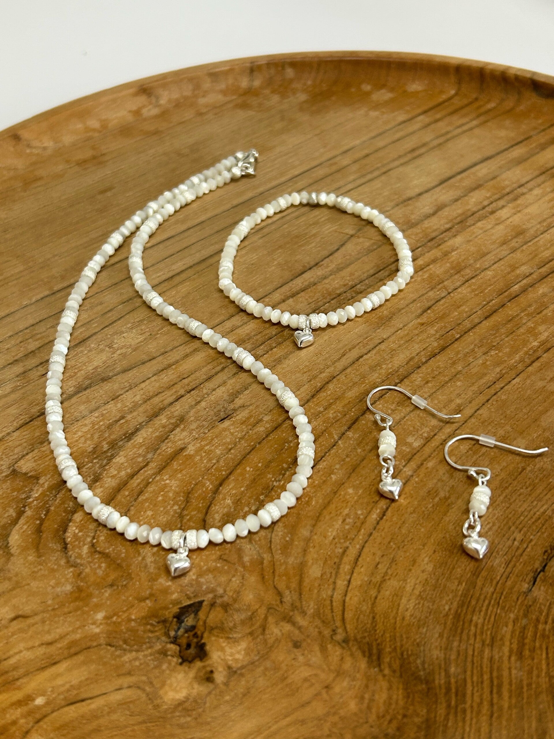 Armband: mit Stretch-Band; kleine Herzchen aus Silber 925; facettierte Linsen 4mm