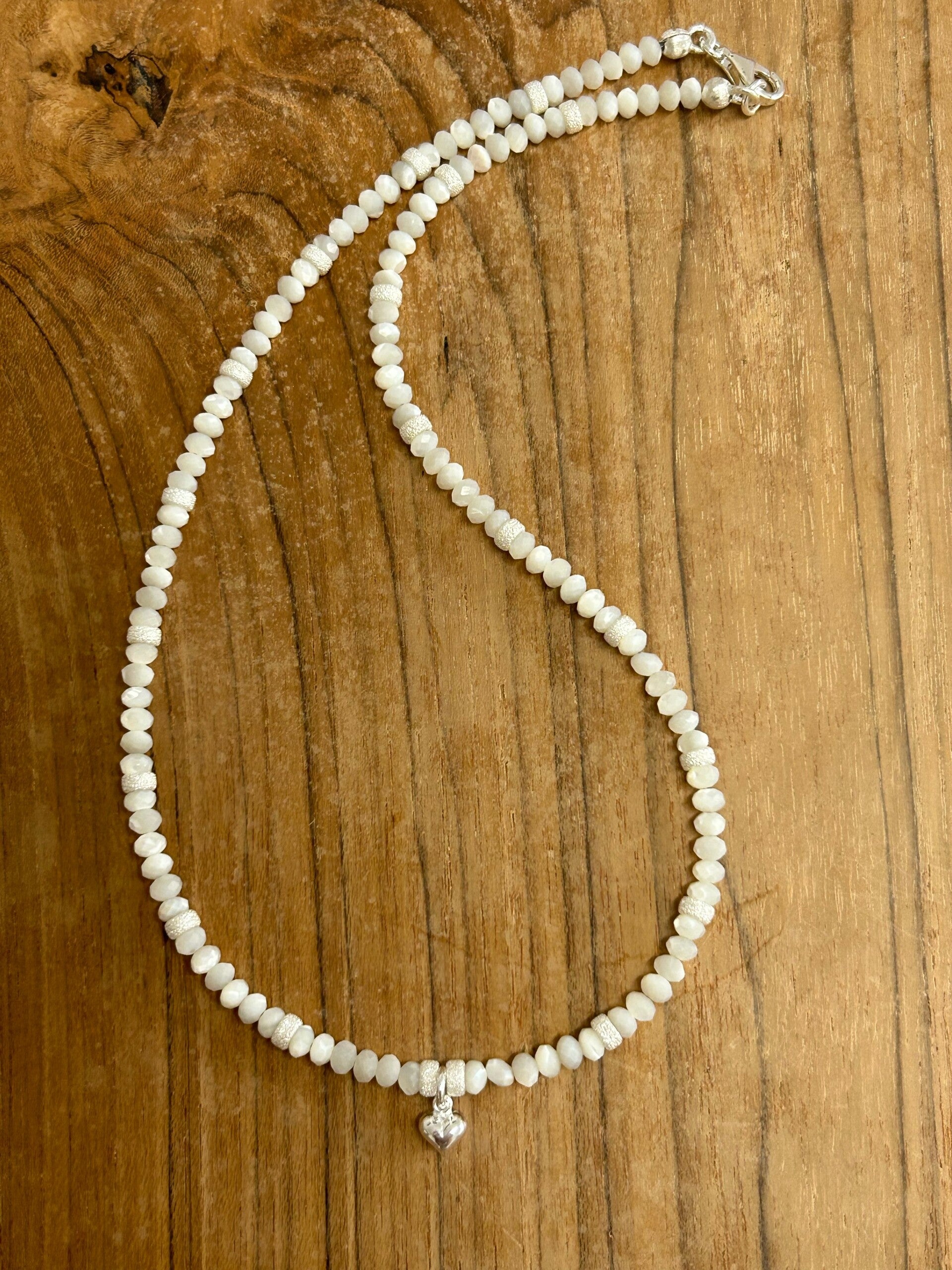 Länge auf dem Bild: 39cm (Deine Wunschlänge in den Kommentar eintragen und entsprechende Preisklasse wählen!); kleines Herz und Elemente diamantiert aus Silber 925; facettierte Linsen 4mm