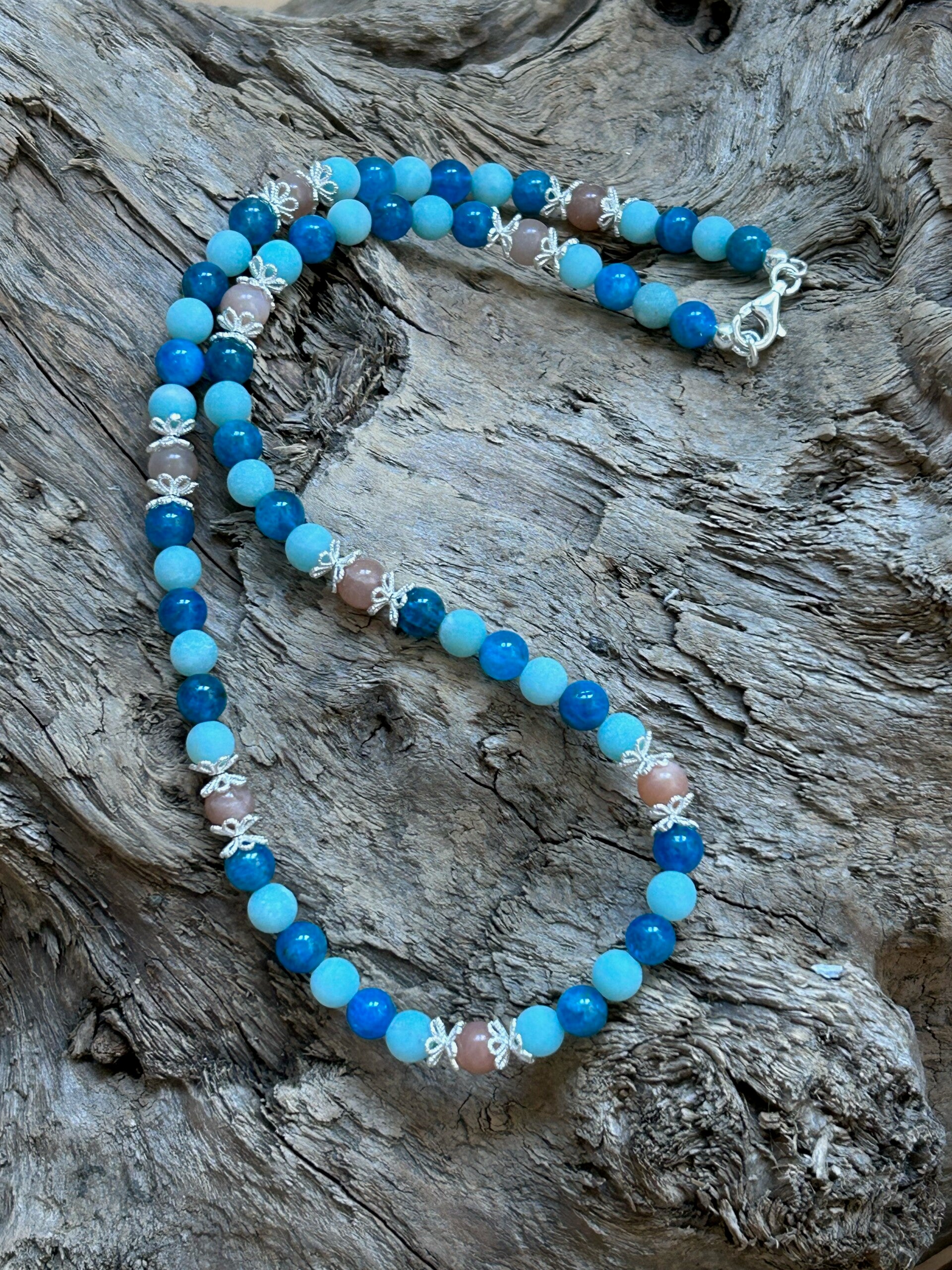 Länge auf dem Bild: 44cm (Deine Wunschlänge in den Kommentar eintragen und entsprechende Preisklasse wählen!); Silber 925 Perlkappen; Kugeln 6mm