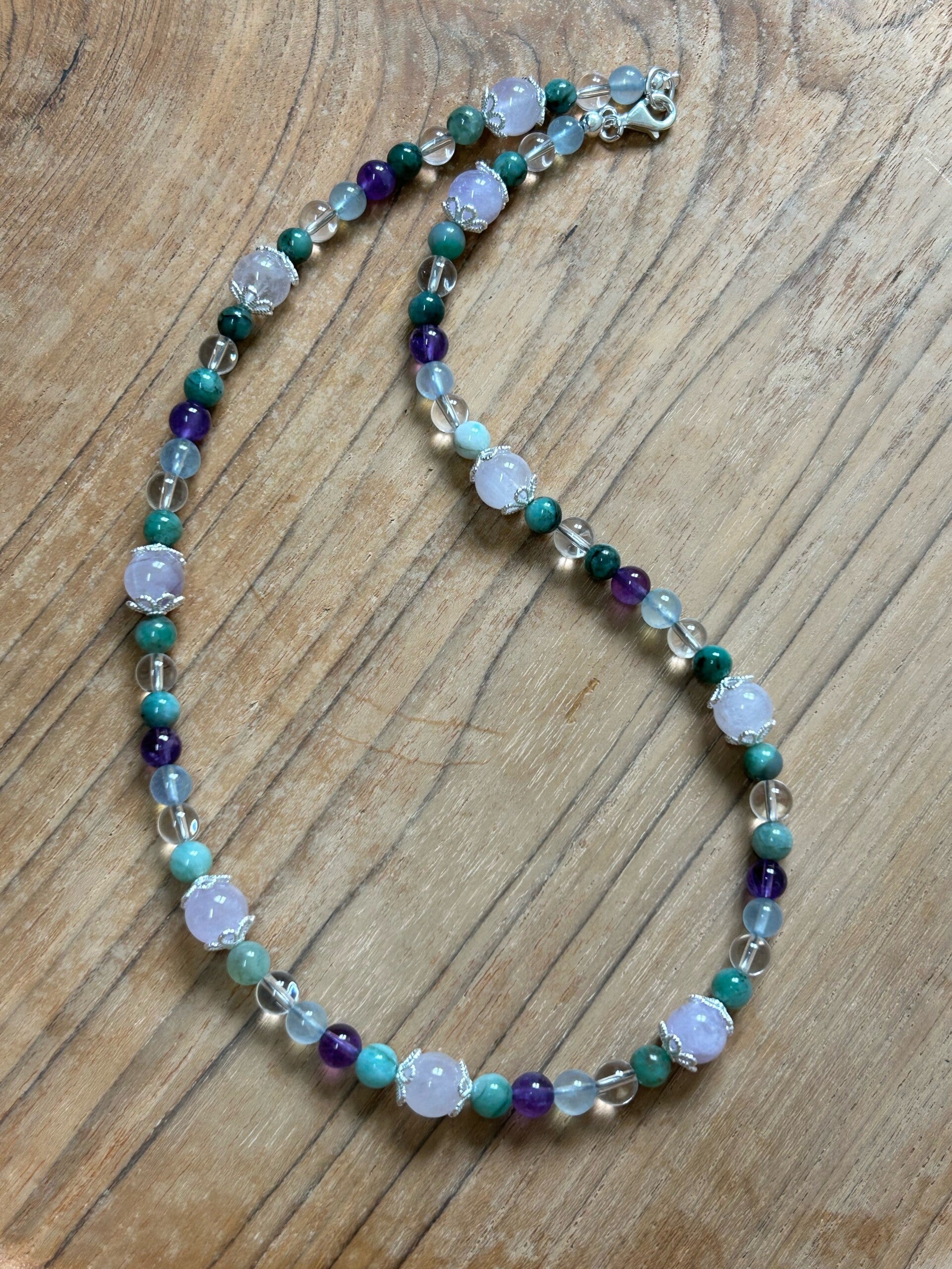 Länge auf dem Bild: 44cm (Deine Wunschlänge in den Kommentar eintragen und entsprechende Preisklasse wählen!); Silber 925 Perlkappen; Kugeln 6 und 8mm