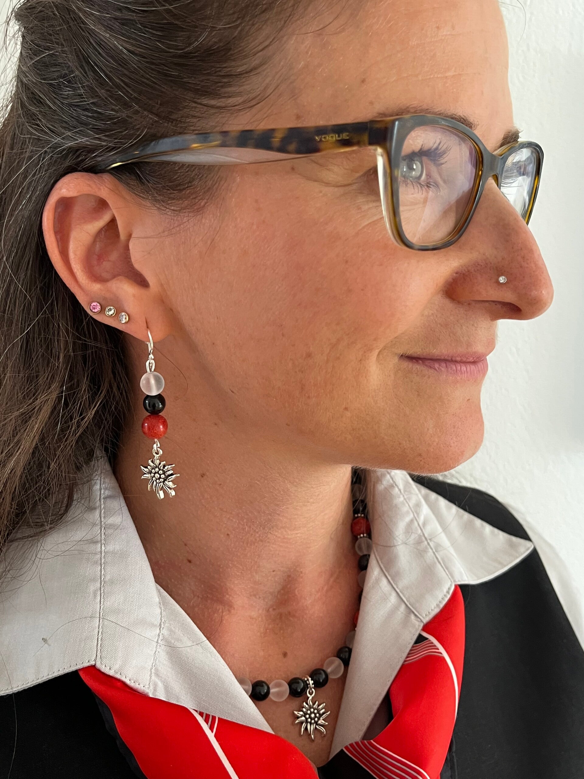 Ohrringe: 5cm; Silber 925 geschwärzter Anhänger "Edelweiss"