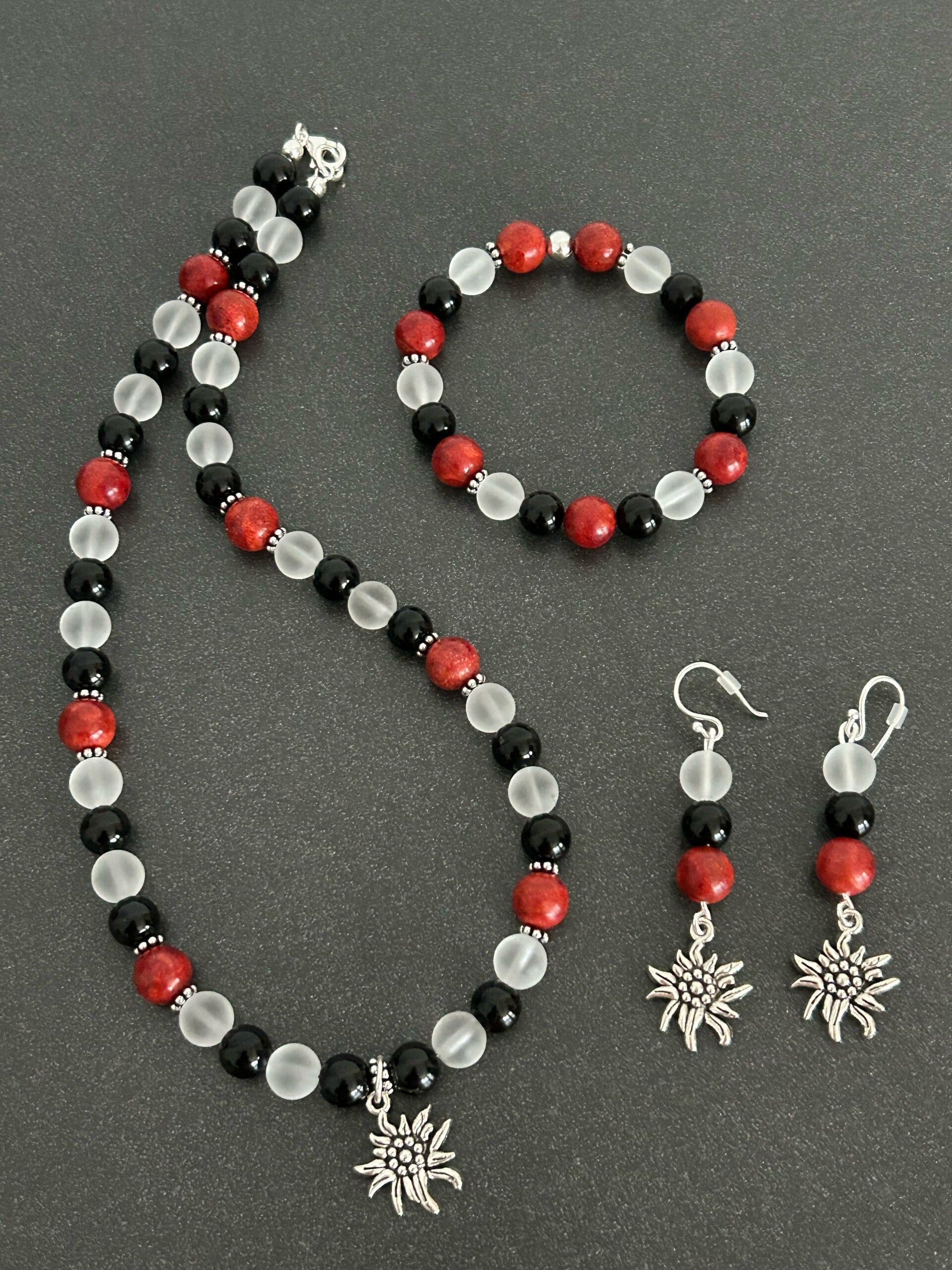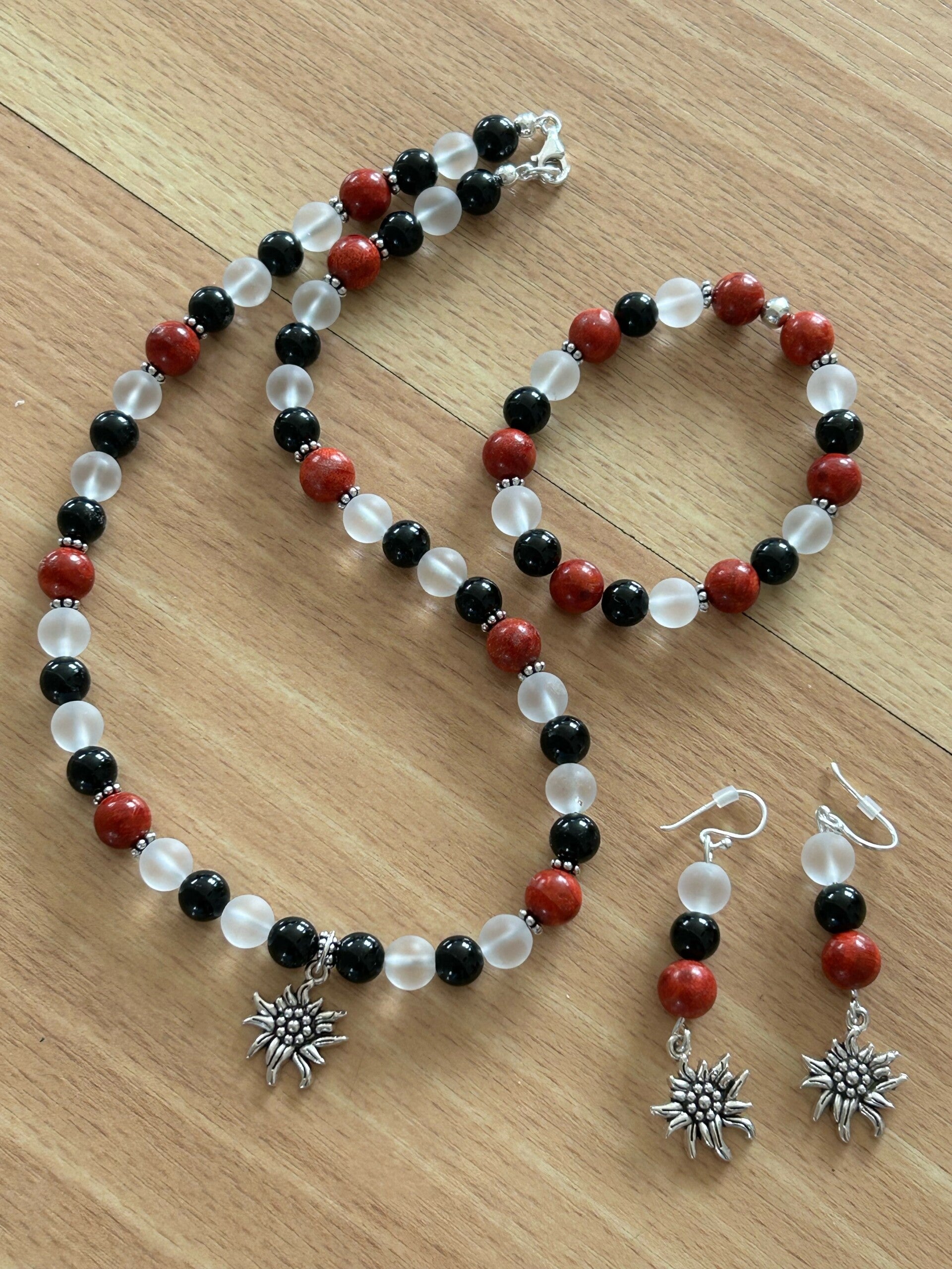 Heilstein-Schmuck-Set - das Schwarz-weiss-rote (S330)
