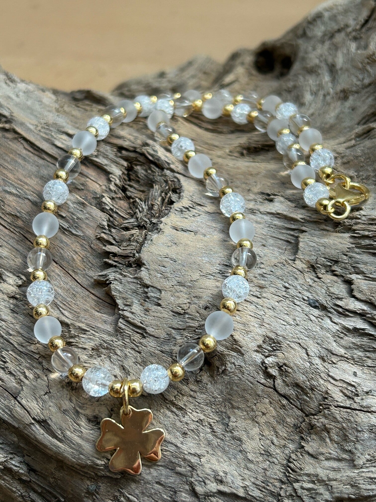 Länge auf dem Bild: 44cm (Deine Wunschlänge in den Kommentar eintragen und entsprechende Preisklasse wählen!); mit Silber 925 vergoldetem Anhänger "Kleeblatt" und Kügeli; Kugeln 6mm