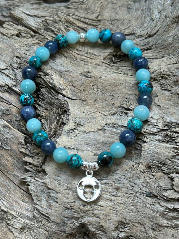 Hinweis: mit Stretch-Band; Silber 925 vergoldet, respektive Silber 925 Anhänger "Stier"; Kugeln 6mm