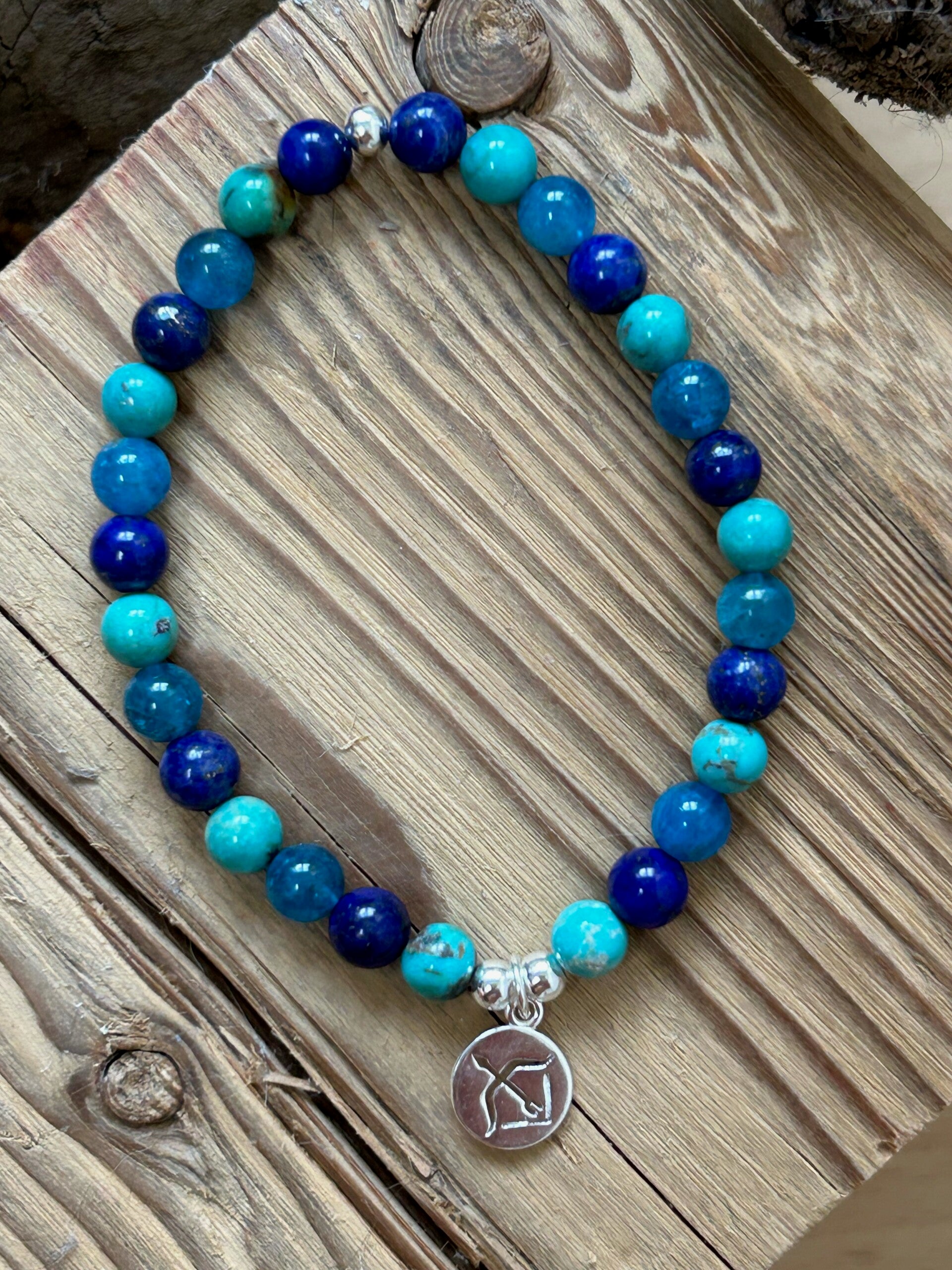 Heilsteine (Link zu Beschreibung und Wirkung): Apatit blau, Lapislazuli, Türkis
