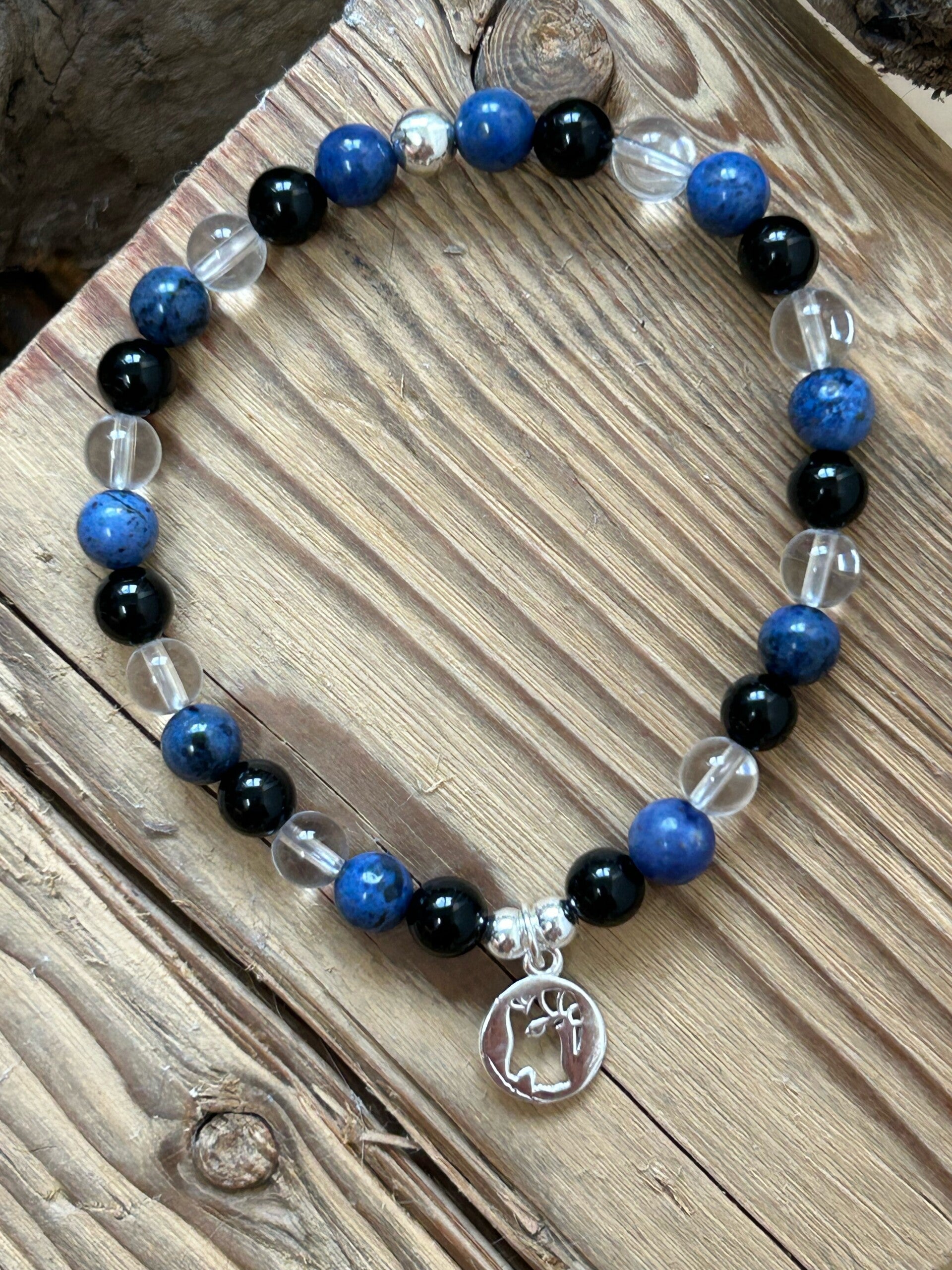 Heilsteine (Link zu Beschreibung und Wirkung): Bergkristall, Dumortierit, Onyx