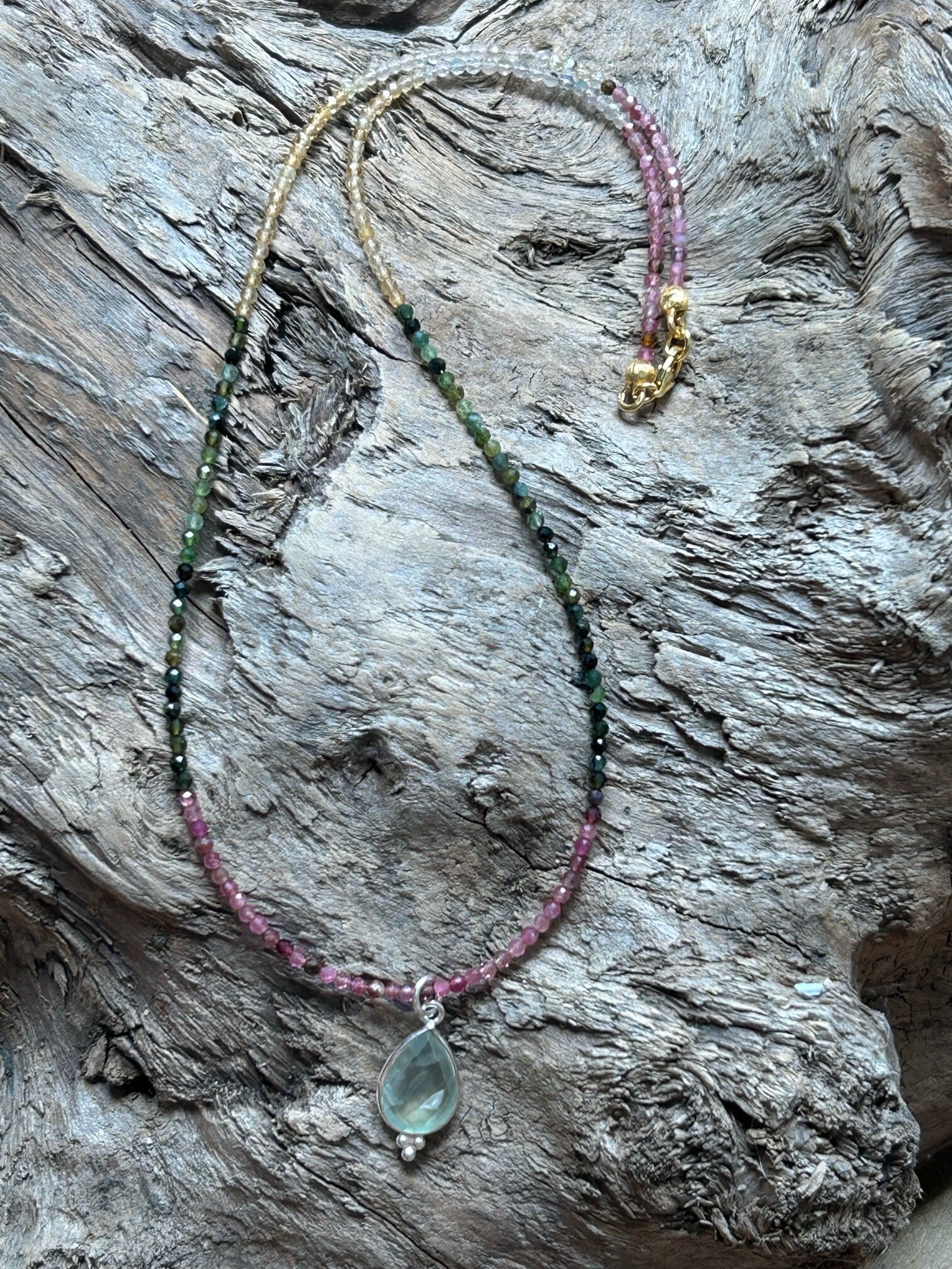 Länge auf dem Bild: 48cm (Deine Wunschlänge in den Kommentar eintragen und entsprechende Preisklasse wählen!); Silber 925 Anhänger-Einfassung 18x11mm; Kugeln 2mm facettiert
