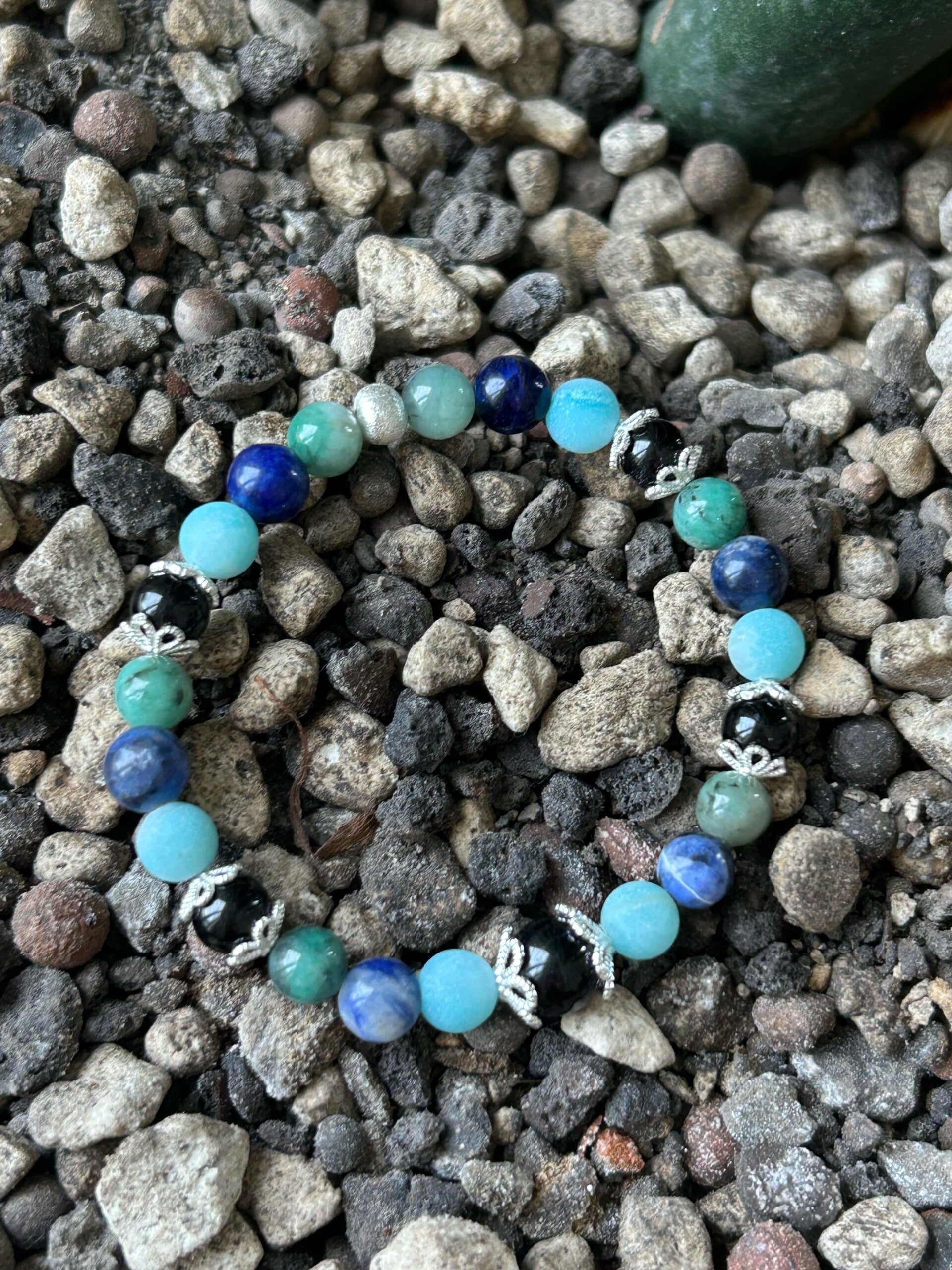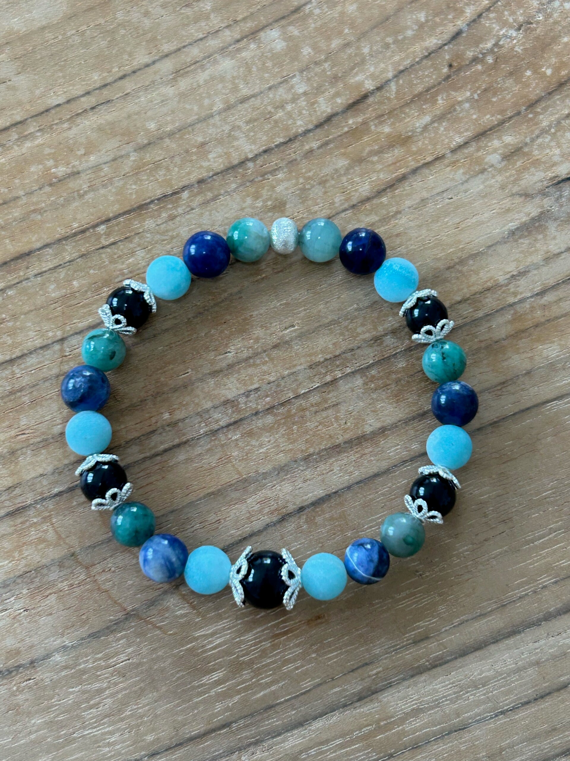 Hinweis: mit Stretch-Band; Silber 925 Perlkappen 6 und 8mm; Kugeln 6mm, eine 8mm