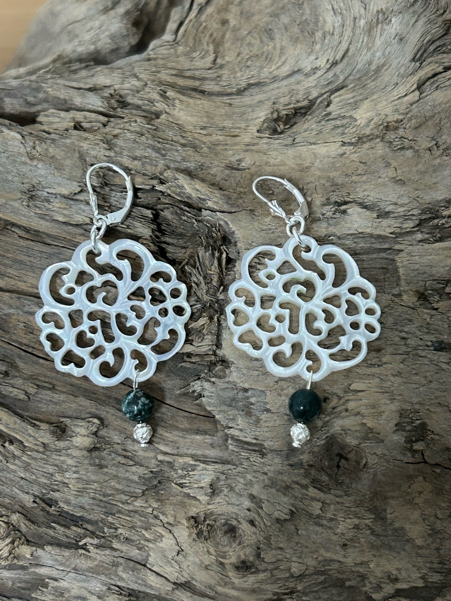 Perlmutt weiss: lässt Geschwüre schneller abheilen; mildert Allergien, Augenleiden, Krampfaderbeschwerden, Venenentzündungen und Wetterfühligkeit; heilsam für die weiblichen Geschlechtsorgane; fördert die Fruchtbarkeit und erleichtert die Geburt; bessert chronische Kopfschmerzen und Migräne; kann Allgemeinzustand der Zähne verbessern; rührt traumatische Erinnerungen an und hilft Trauer, Verlust und Schmerz zu wandeln, sowie unverarbeitete Konflikte zu lösen; hilft bei Alpträumen; weckt den Wunsch nach Rückzug, Gemütlichkeit und Seelenpflege; behebt Stimmungsschwankungen; wirkt gegen geistige Erschöpfung; unterstützt die Konzentrationsfähigkeit