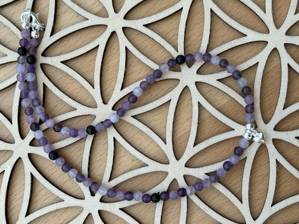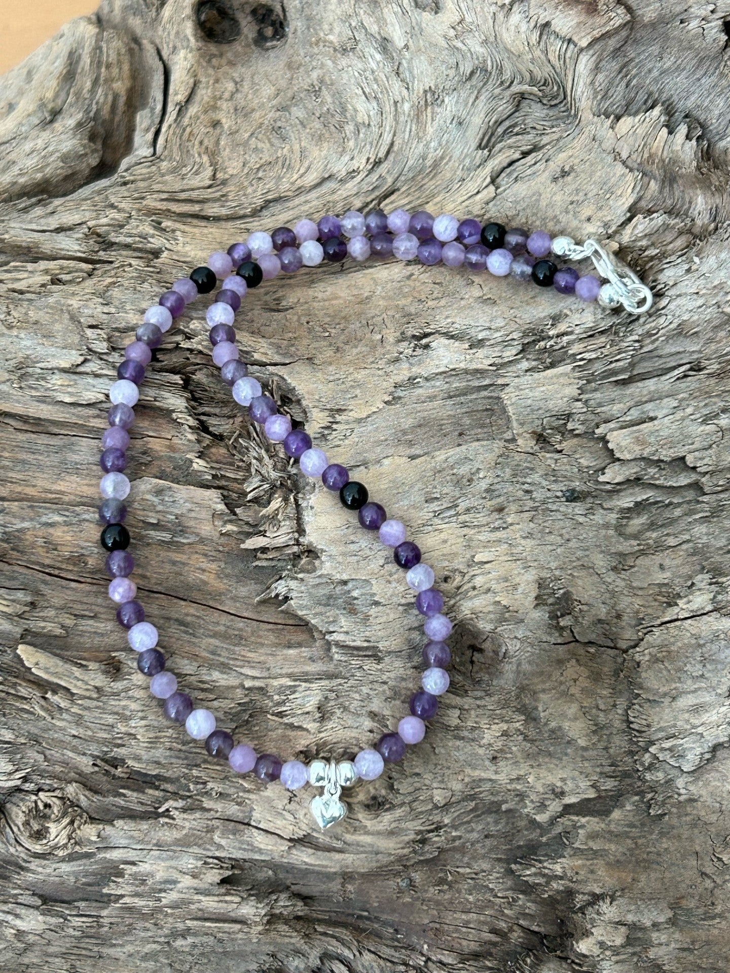 Länge auf dem Bild: 36cm (Deine Wunschlänge in den Kommentar eintragen und entsprechende Preisklasse wählen!); Silber 925 Anhänger "Herzli", Kügeli und Verschluss; Kugeln 4mm und 4mm facettiert