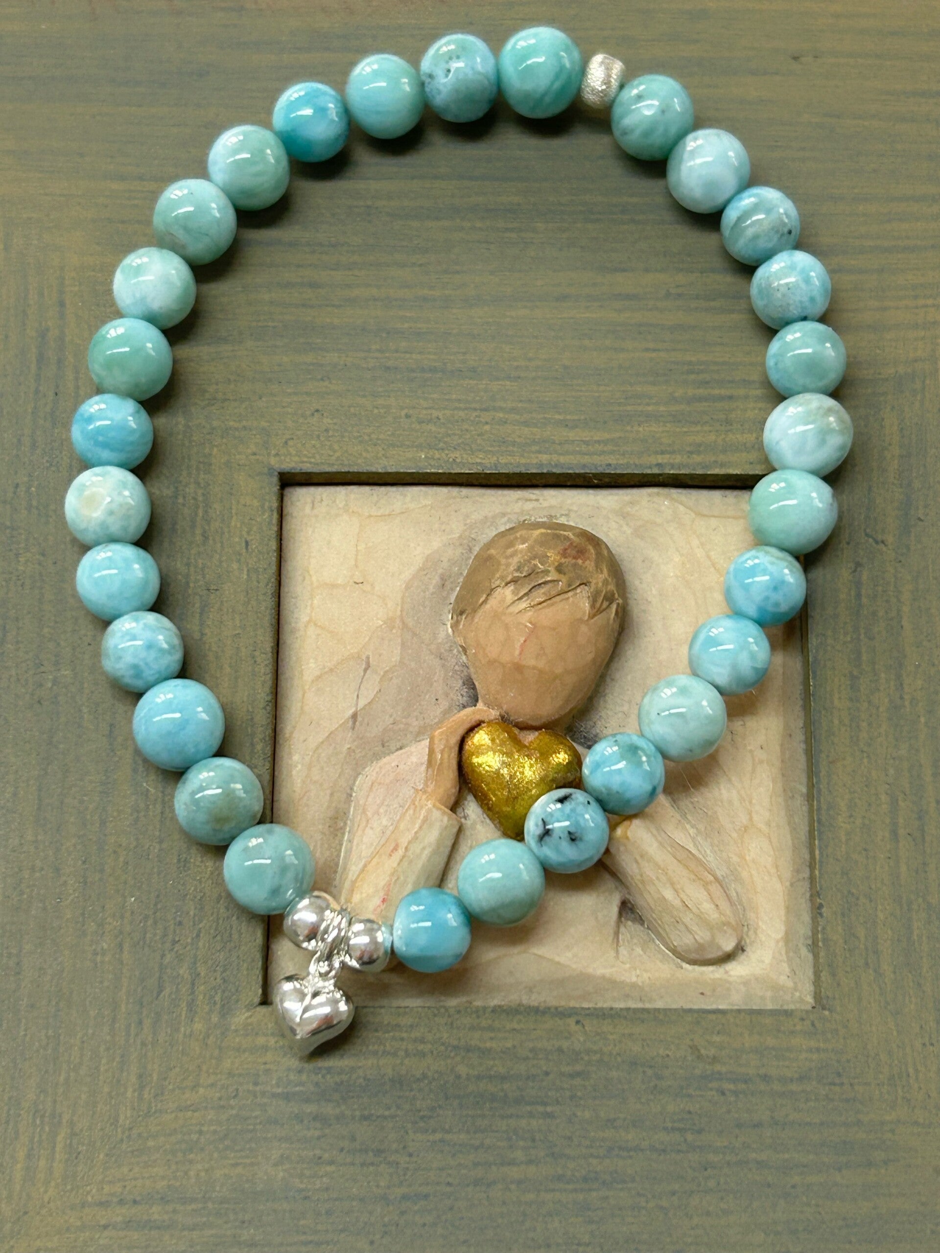 Larimar: baut Selbstheilungskräfte des Körpers auf; stimuliert die Gehirntätigkeit; beruhigt bei Hals- und Mandelentzündungen; stärkt die Knochen und fördert das Wachstum der Kinder; kann Asthma und Beklemmung lindern; hilft das eigene Leben selbst in die Hand zu nehmen; hilft den eigenen Körper und die gegebene Situation anzunehmen und bei Heim- und Fernweh; stärkt die Selbstdisziplin; bringt innere Ruhe bei schwerer Belastung