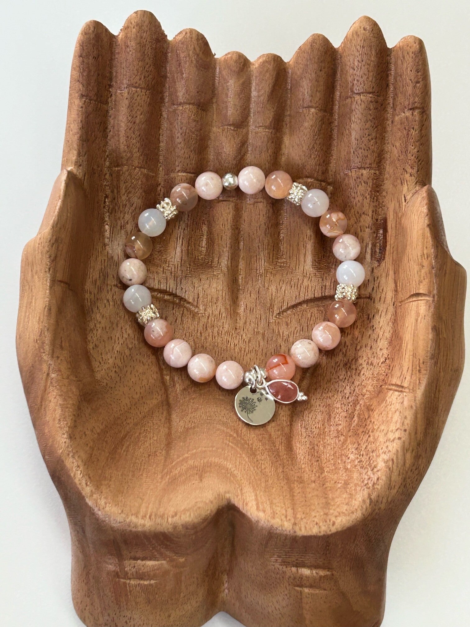 Kirschblüten-Achat: Er ist der ideale Begleiter nach einer Trennung oder um ein Business aufzubauen; er steht symbolisch für den «Neuanfang»; er stärkt das Durchsetzungsvermögen und lässt auf Situationsveränderungen wesentlich besser reagieren; er sorgt für Stabilität und Erdung; er fördert die Entfaltung der Persönlichkeit und das Aufblühen der Seele; er unterstützt das Persönliche Wachstum und lässt dich alle Wünsche, Visionen und Projekte visualisieren um sie in dein Leben zu rufen; löst Ärger, Streit, Ängste, Hemmungen, Blockaden und Spannungen; stärkt die Rhetorik und das Selbstvertrauen