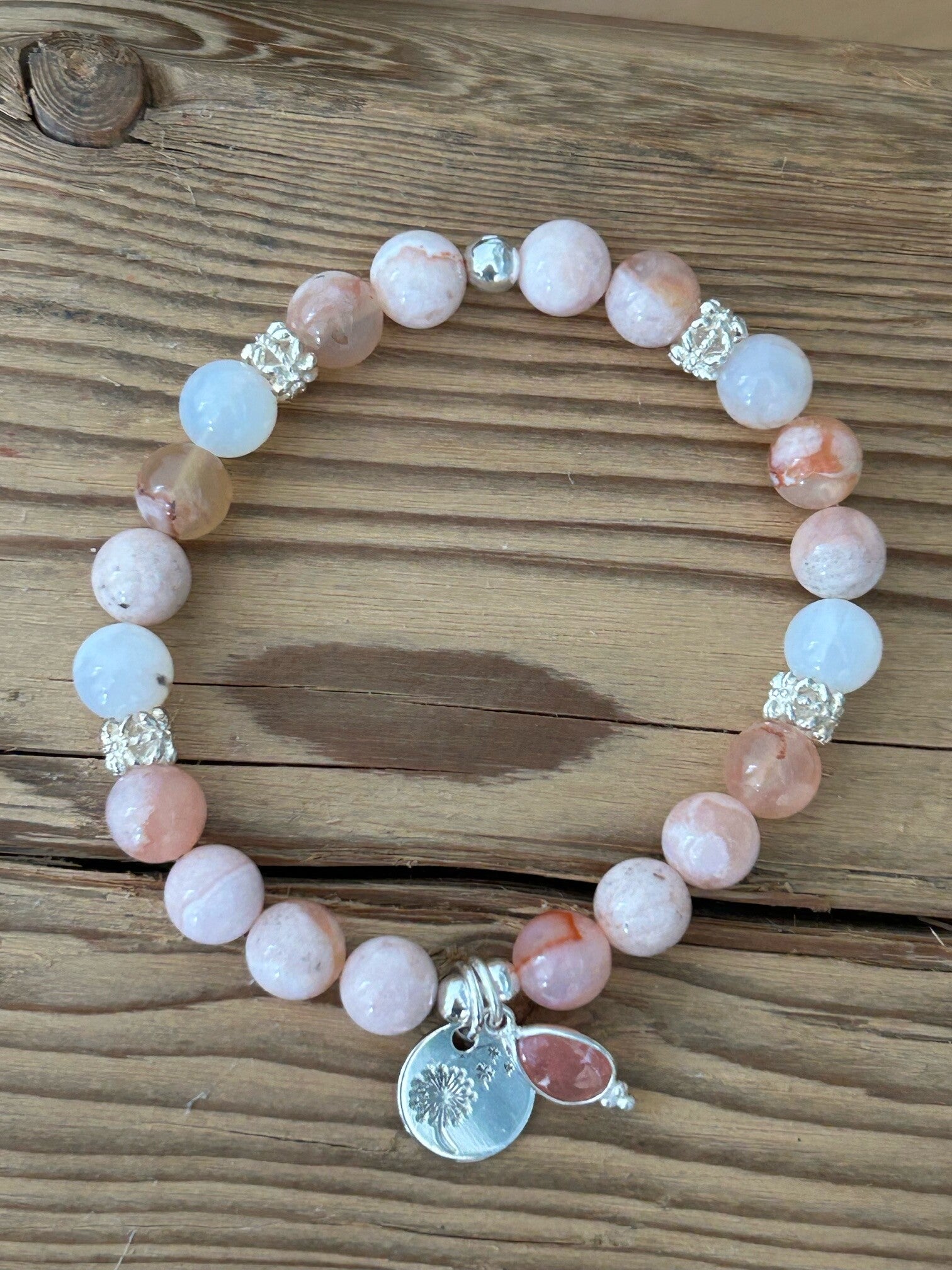 Hinweis: mit Stretch-Band; Silber 925 Anhänger "Tropfen" und "Pusteblume", Elemente und Kügeli; Kugeln 8mm