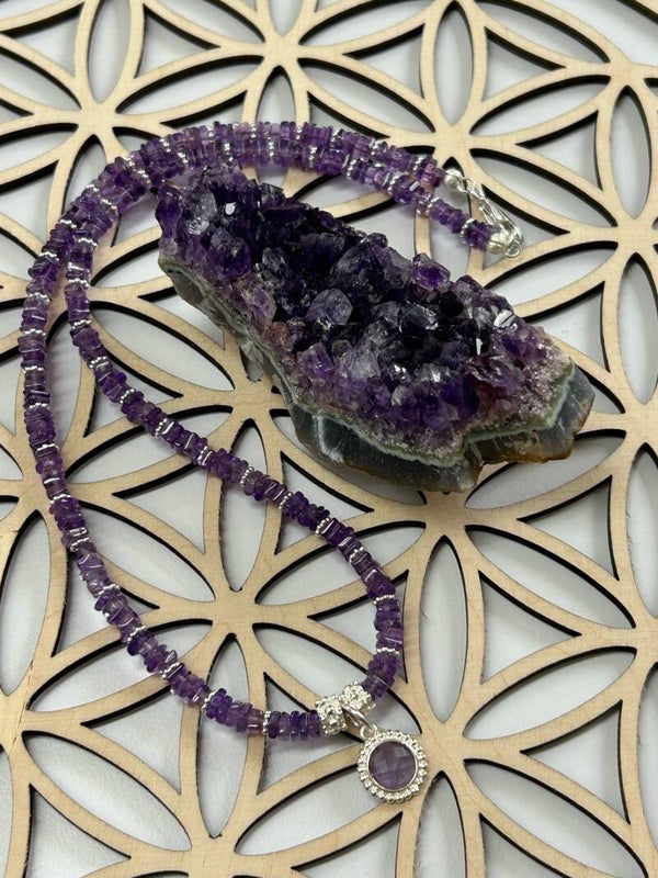 Länge auf dem Bild: 46cm (Deine Wunschlänge in den Kommentar eintragen und entsprechende Preisklasse wählen!); Silber 925 Anhänger und Elemente; Quadrat-Splitter 5mm; Anhänger facettiert