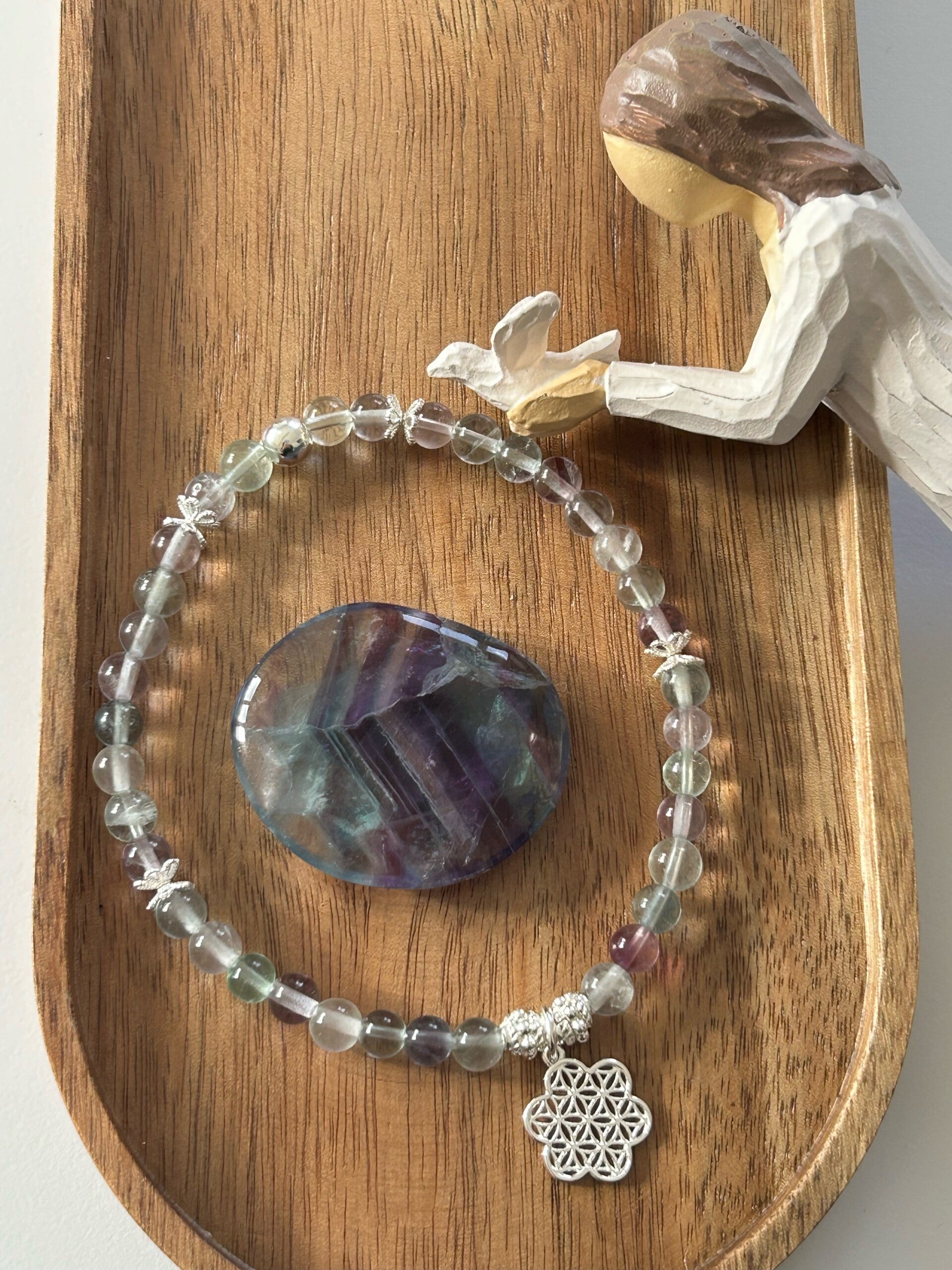 Fluorit Regenbogen: beschleunigt und verbessert das Knochenwachstum nach Knochenbrüchen; wird gegen Osteoporose eingesetzt; wirkt auf Bänder, Sehnen und die Beweglichkeit der Gelenke; wirkt aufbauend auf Haut, Grosshirnrinde und Nerven; erleichtert Neuanfänge im Leben; macht erfinderisch, entschlussfreudig und beweglich
