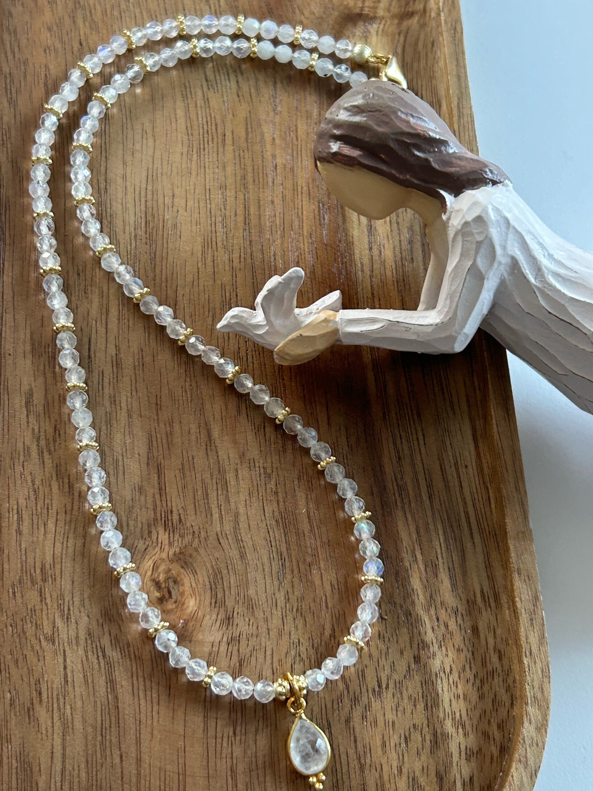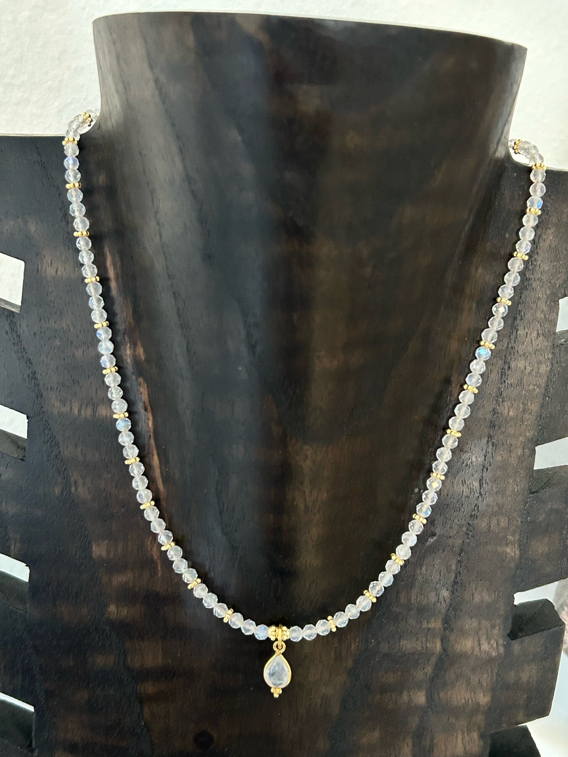 Länge auf dem Bild: 44cm (Deine Wunschlänge in den Kommentar eintragen und entsprechende Preisklasse wählen!); Silber 925 vergoldeter Anhänger (Tropfen 14x7mm, facettiert) und Elemente; Kugeln 4mm facettiert