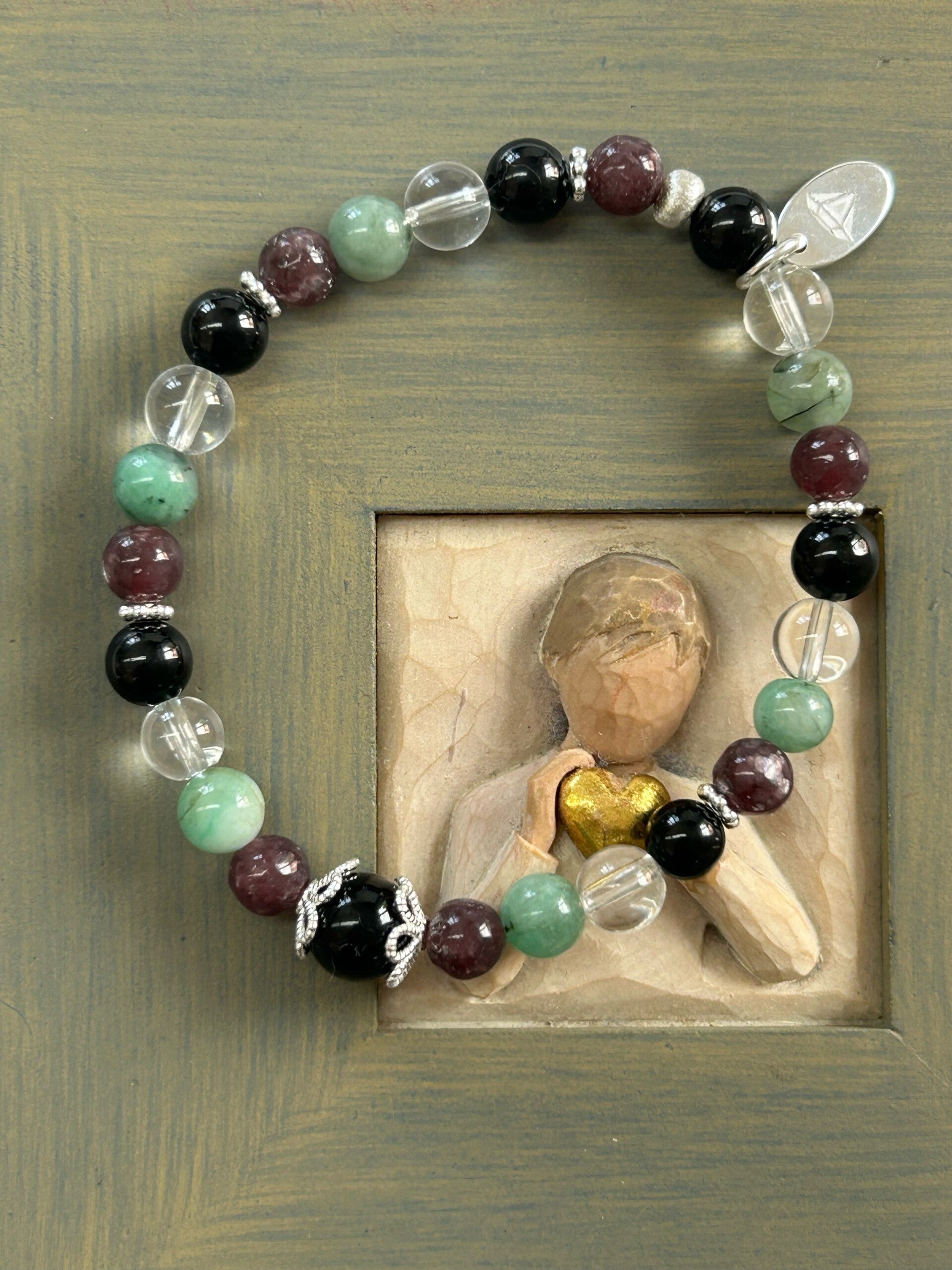 Lepidolith: wirkt schmerzlindernd; fördert die Verdauung; hilft bei Ischias- und Nervenschmerzen; lindert Juckreiz und kann bei Psoriasis helfen; behebt Schlafstörungen; mindert Stress und Niedergeschlagenheit