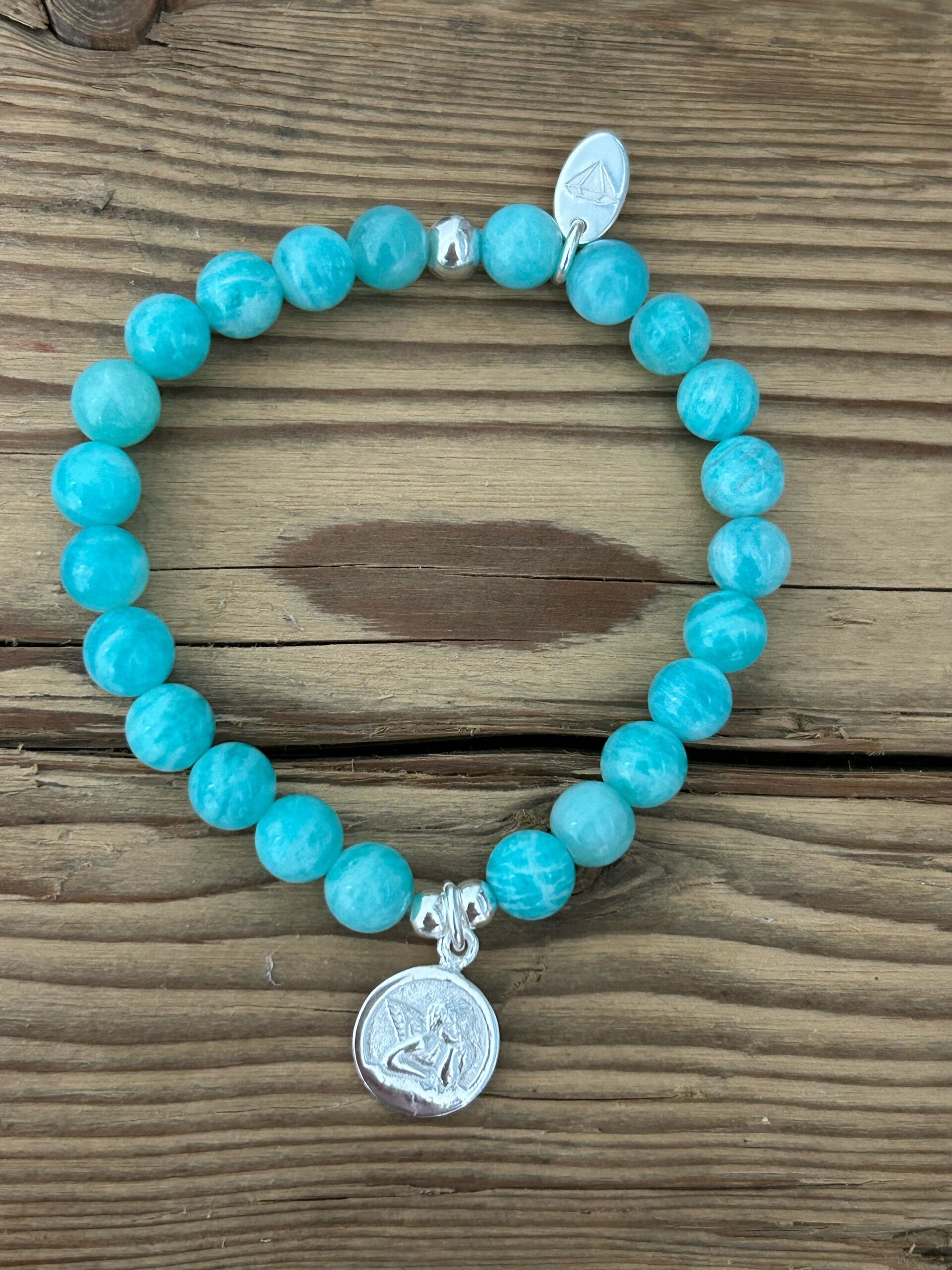 Hinweis: mit Stretch-Band; Silber 925 Anhänger "Schutzengel" und Kügeli; Kugeln 6mm