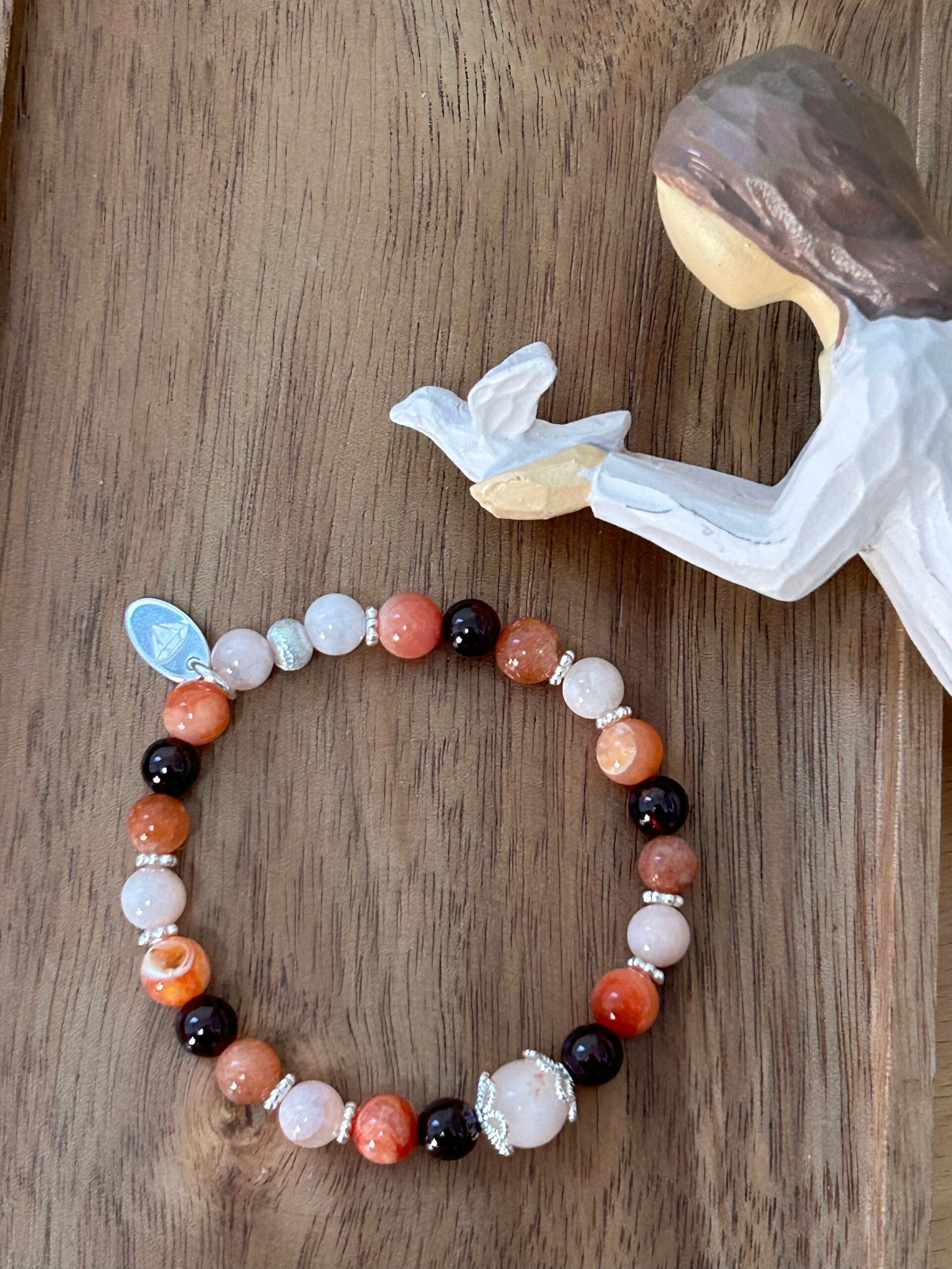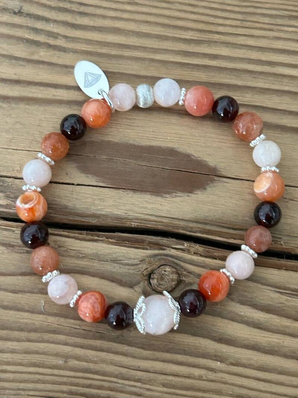 Heilsteine (Link zu Beschreibung und Wirkung): Feueropal, Granat, Kirschblütenachat, Sonnenstein
