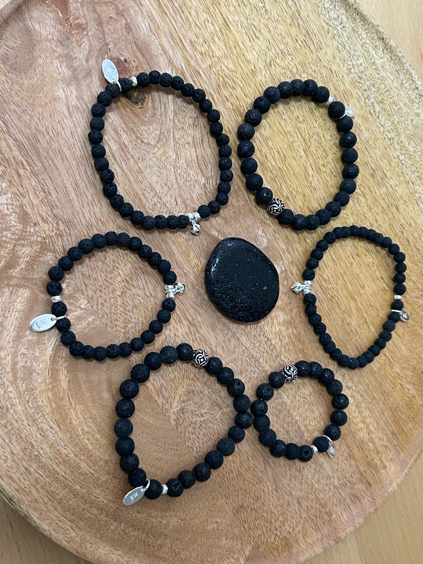 Hinweis: mit Stretch-Band; Silber 925 geschwärzte Kugel; Kugeln 8mm