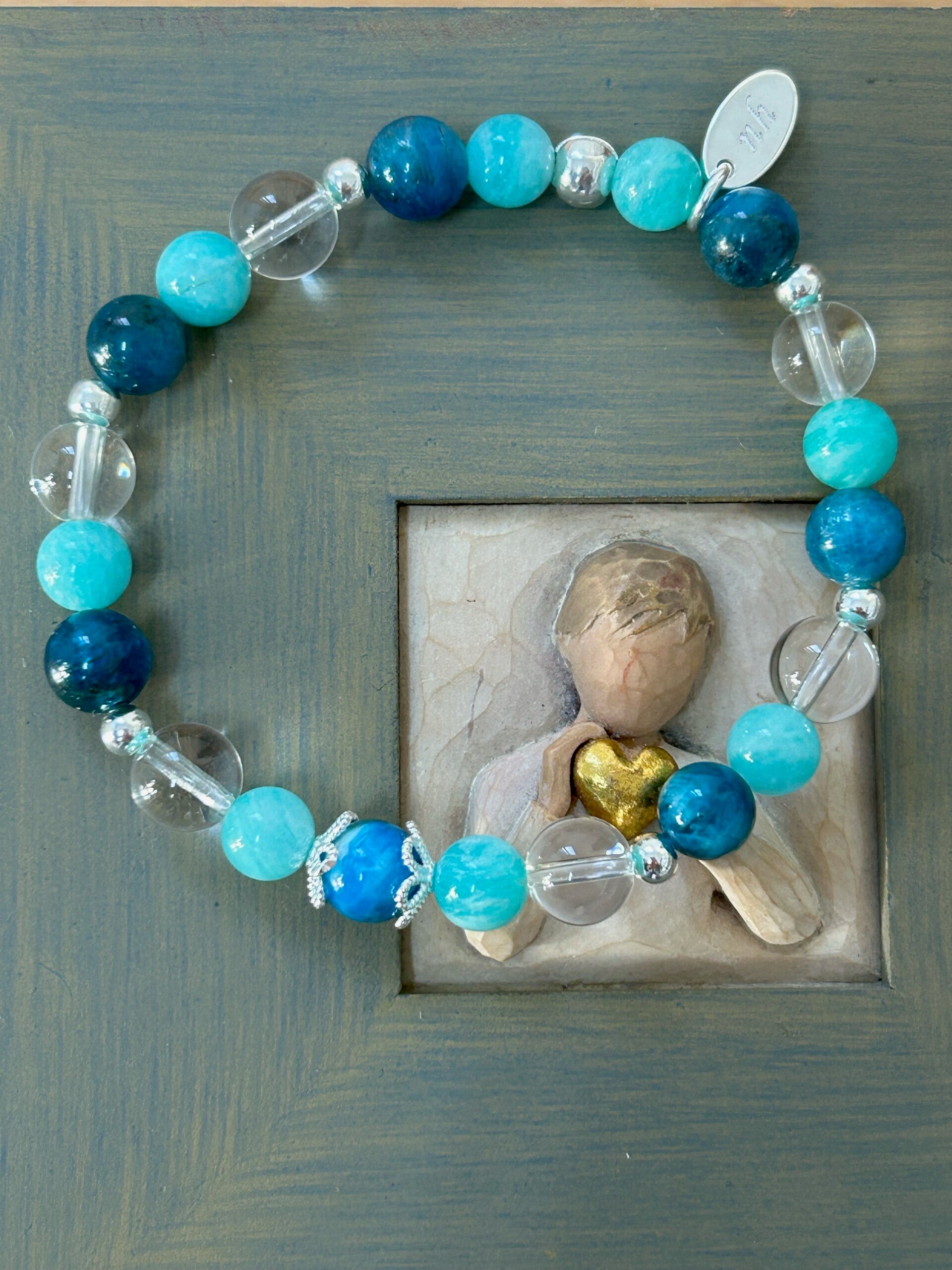 Apatit blau: Blutdruck senkend; beschleunigt Heilung bei Knochenbrüchen; hilft bei Arthrose, Osteoporose; stärkt Selbstbewusstsein; vermindert Sprachprobleme