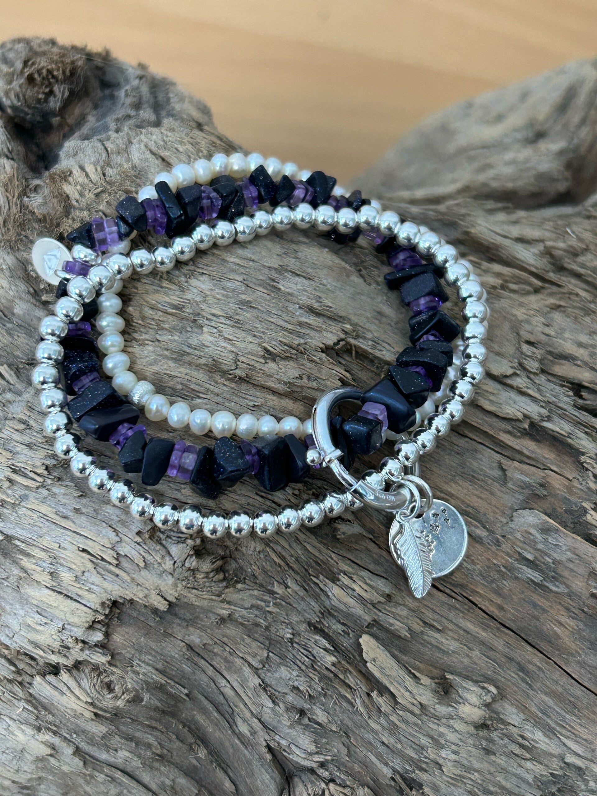 Hinweis: mit Stretch-Band; Länge: 15-22ch wählbar; Silber 925 Federring, Anhänger "Federli" und "Pusteblume", Federring und Kügeli (4mm); Kugeln 4mm, Splitter/Chips 4 und 6mm