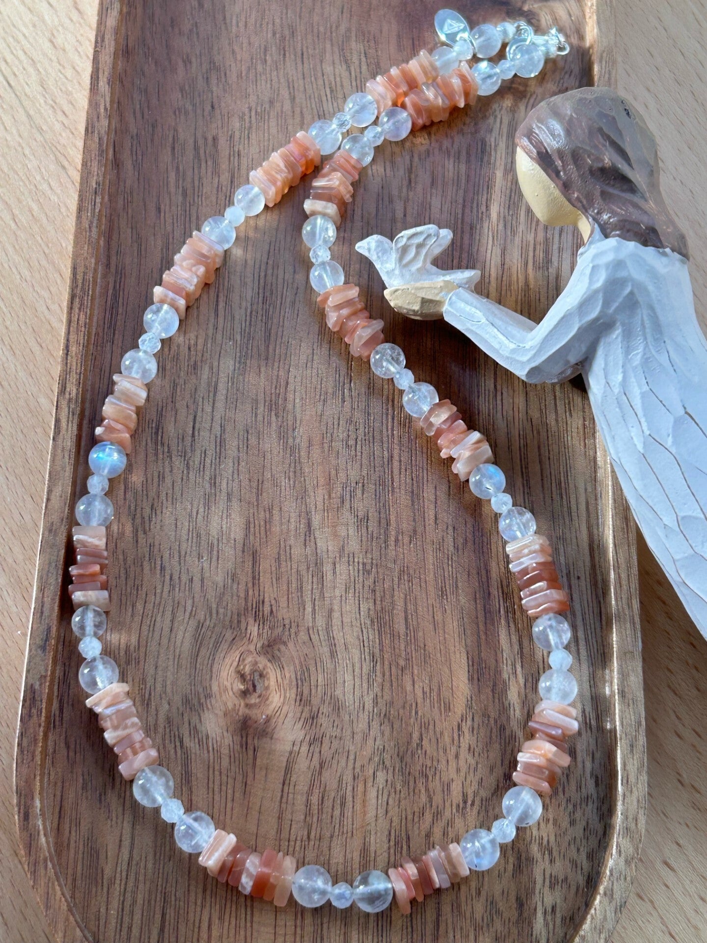 Mondstein bunt / multicolor: beruhigt gereizte Haut; straft das Gewebe; wirkt beruhigend und erdend; verbessert das Gefühl für die Bedürfnisse des Körpers; stärkt die Identifikation mit dessen Vorgängen