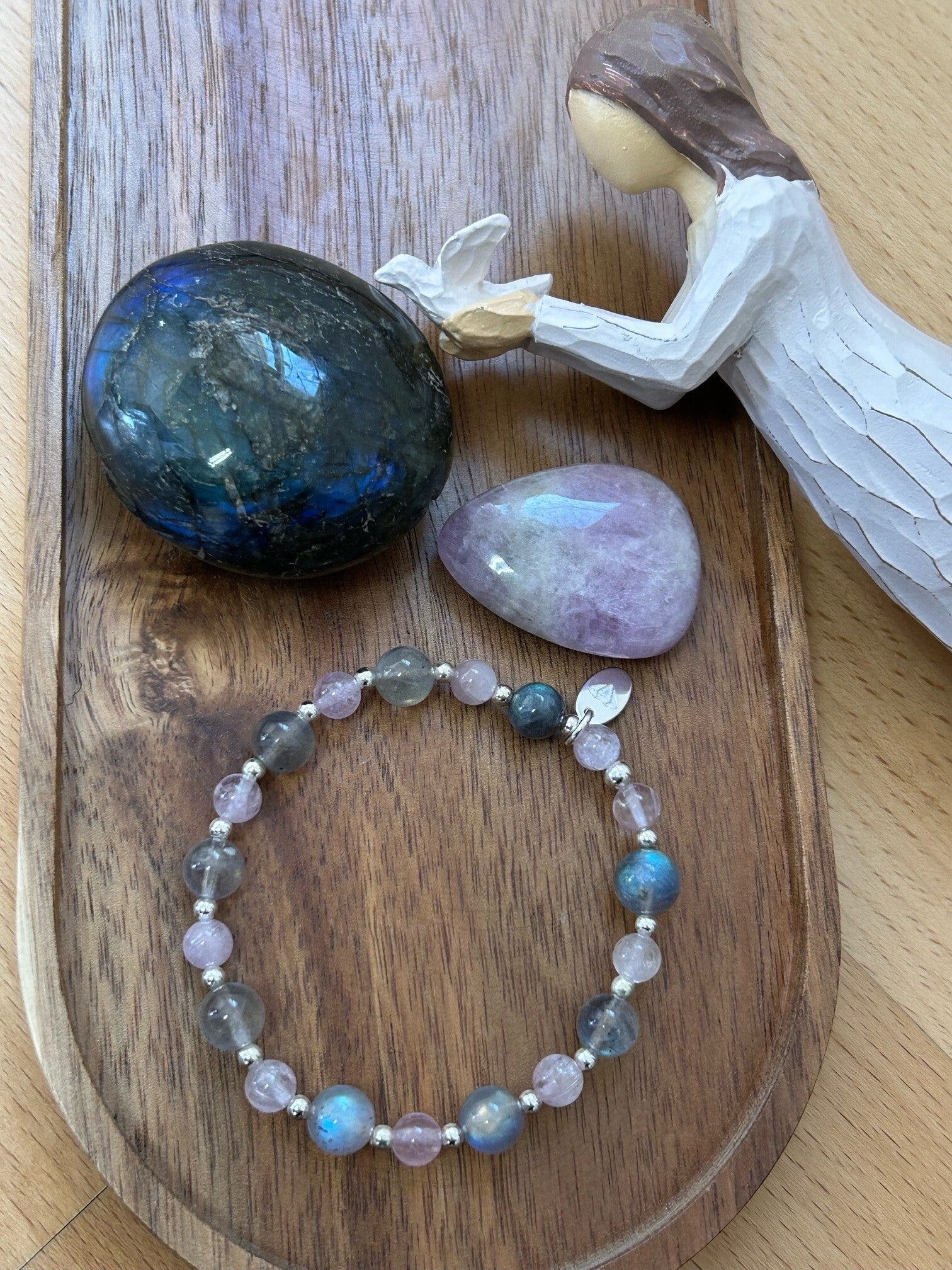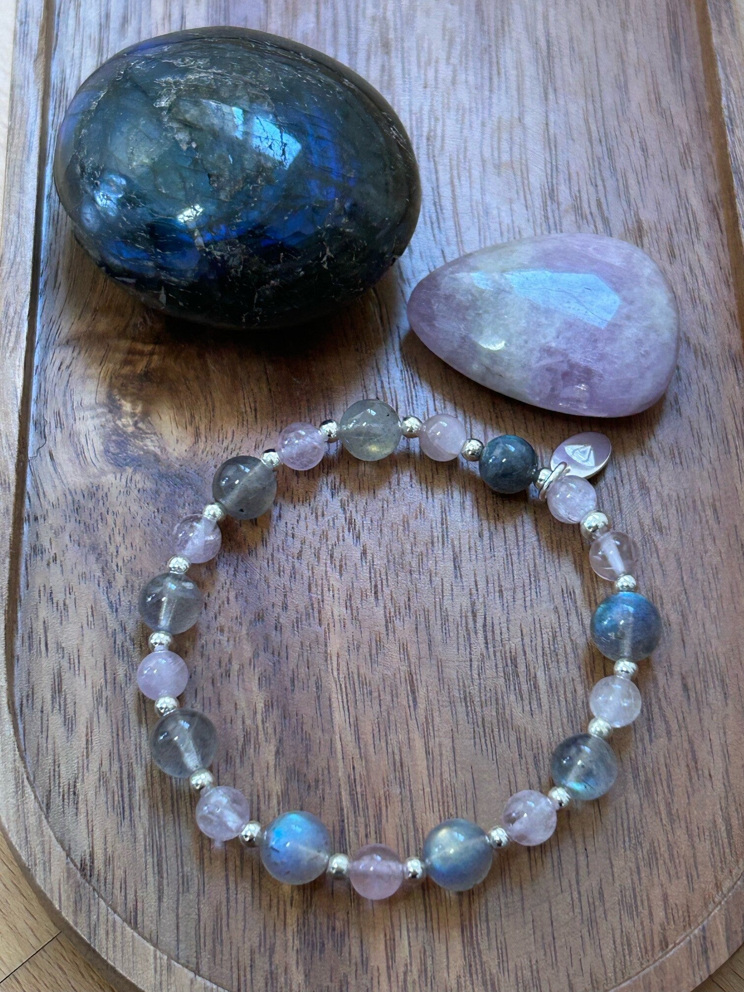 Labradorit: stärkt den Kreislauf und das Immunsystem; hilft bei Rheuma; hilft bei Stimmungsschwankungen