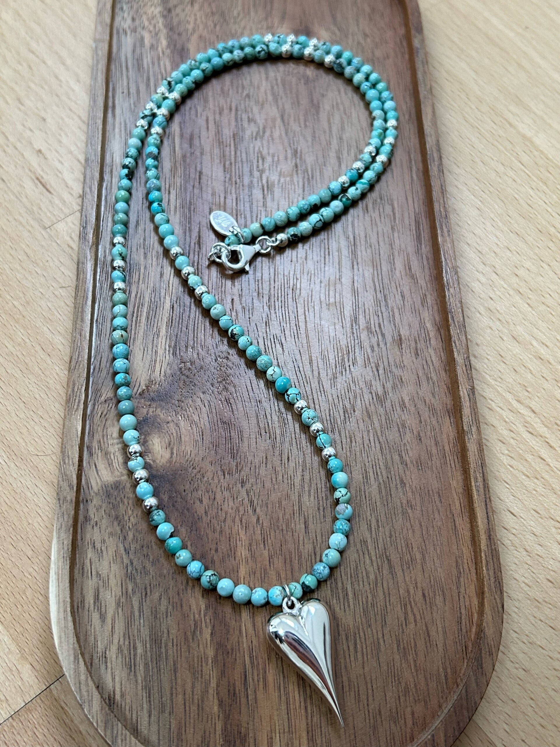 Länge: 69cm; Silber 925 Anhänger "Herz" (30mm hoch) und Kugeln; Kugeln 4mm