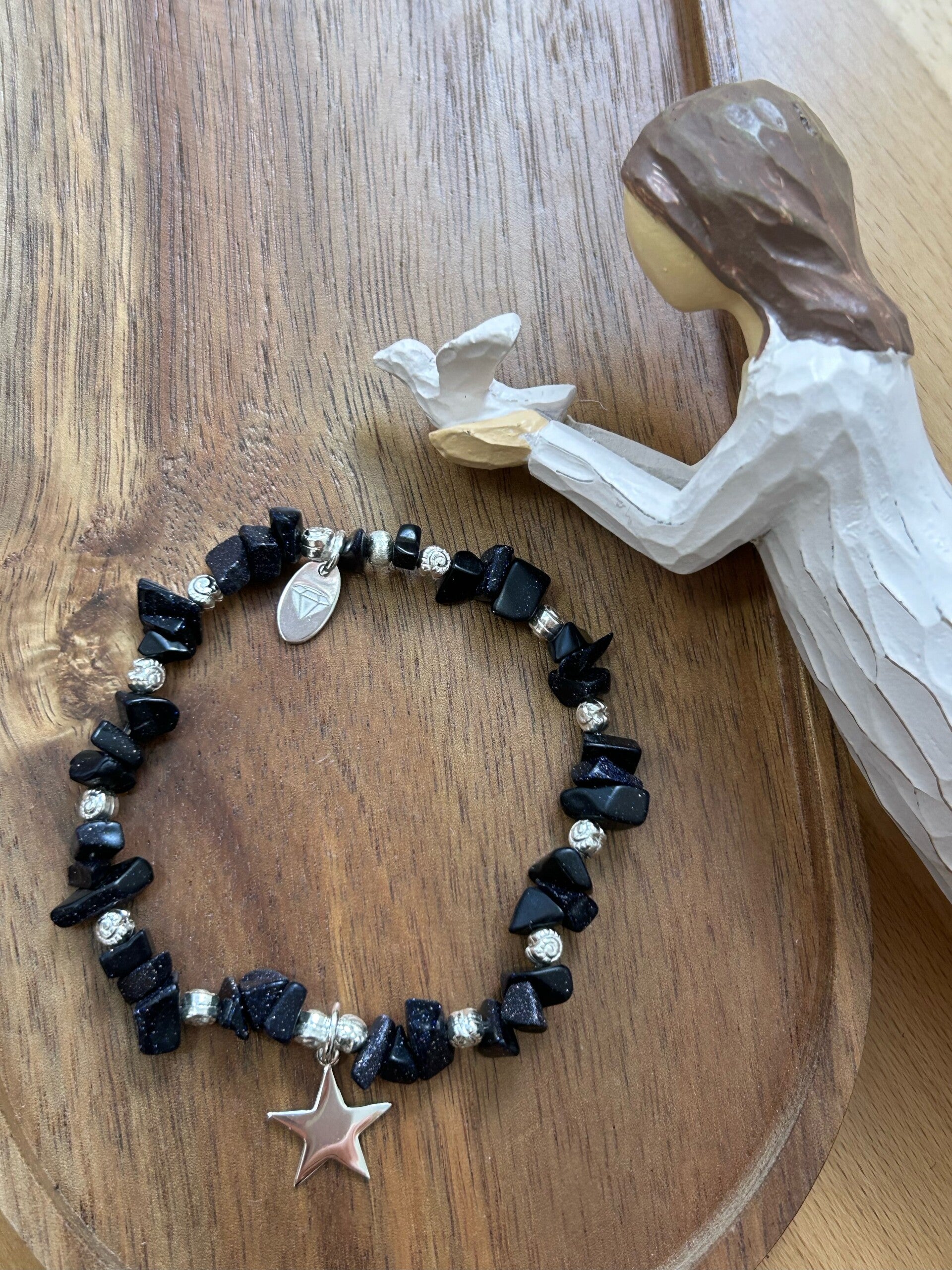 Hinweis: mit Stretch-Band; Silber 925 Elemente und Anhänger "Stern"; Chips 4mm
