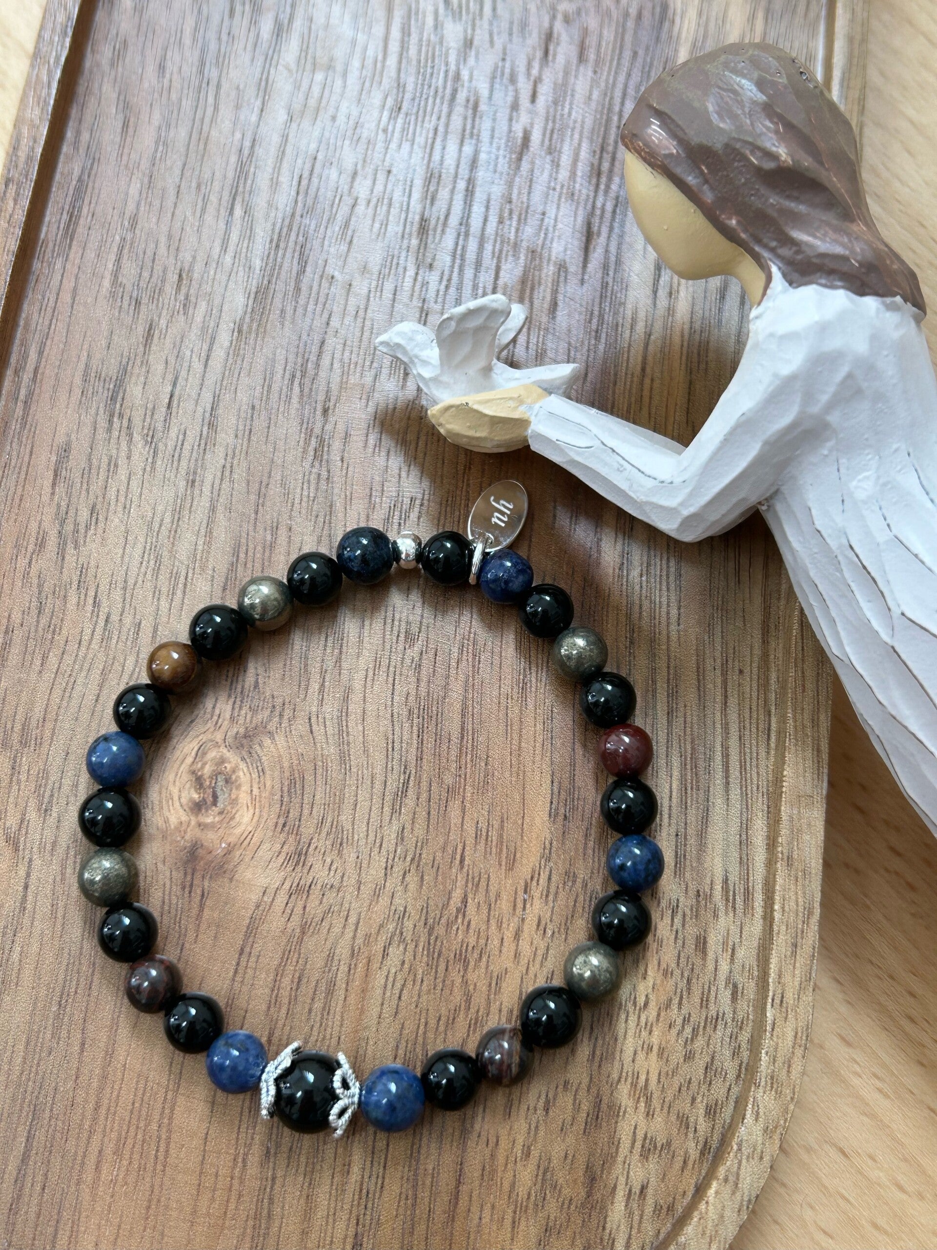 Heilsteine (Link zu Beschreibung und Wirkung): Dumortierit, Obsidian schwarz, Onyx, Pyrit, Tigereisen, Turmalin schwarz (Schörl)