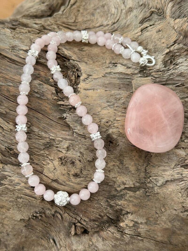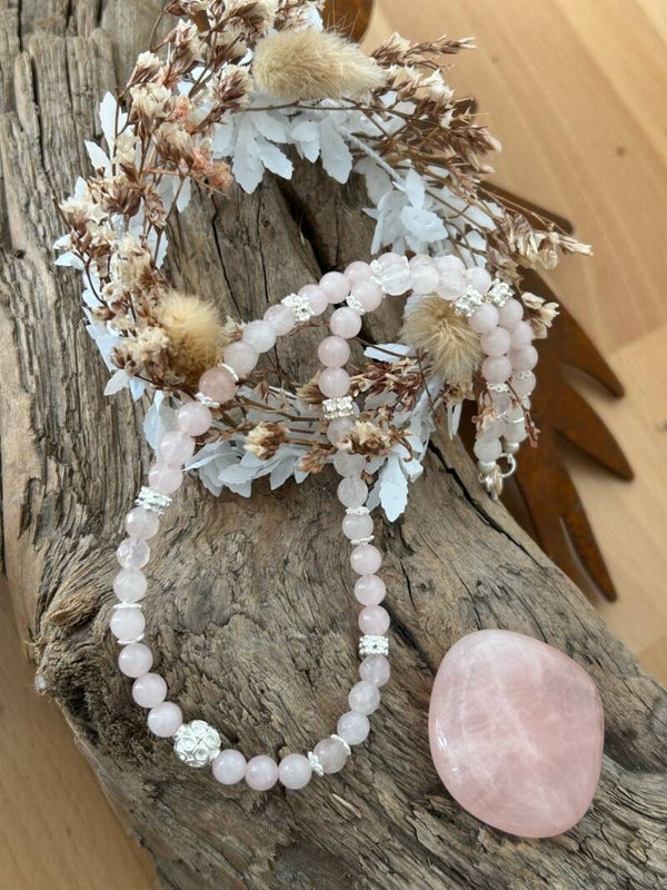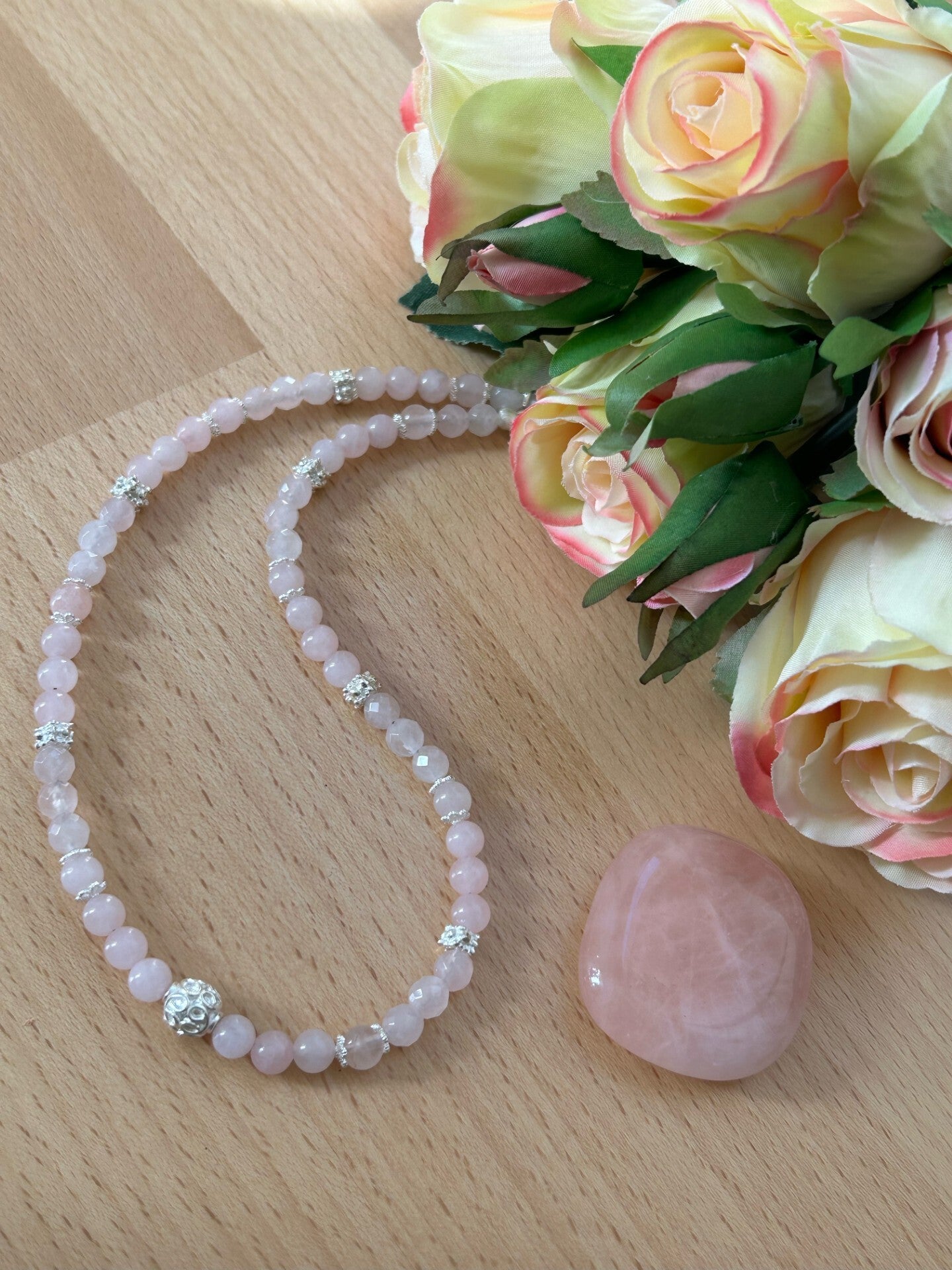 Rosenquarz: wirkt beruhigend; stärkt Herz und Blut; für Liebe und Romantik; hilft bei Schlaflosigkeit; dient als Strahlenschutz