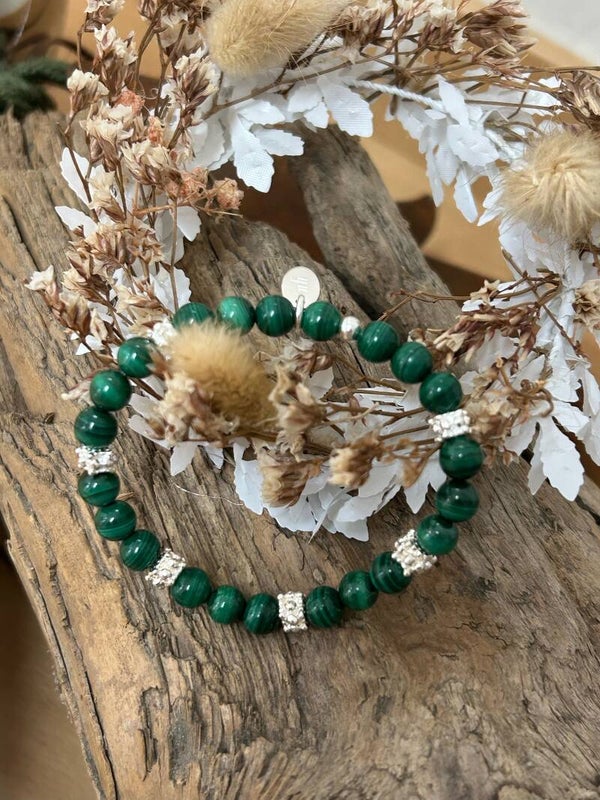 Malachit: stärkt die Gelenke, Lebensfreude und Liebe; fördert Stoffwechsel; Geburtsstein