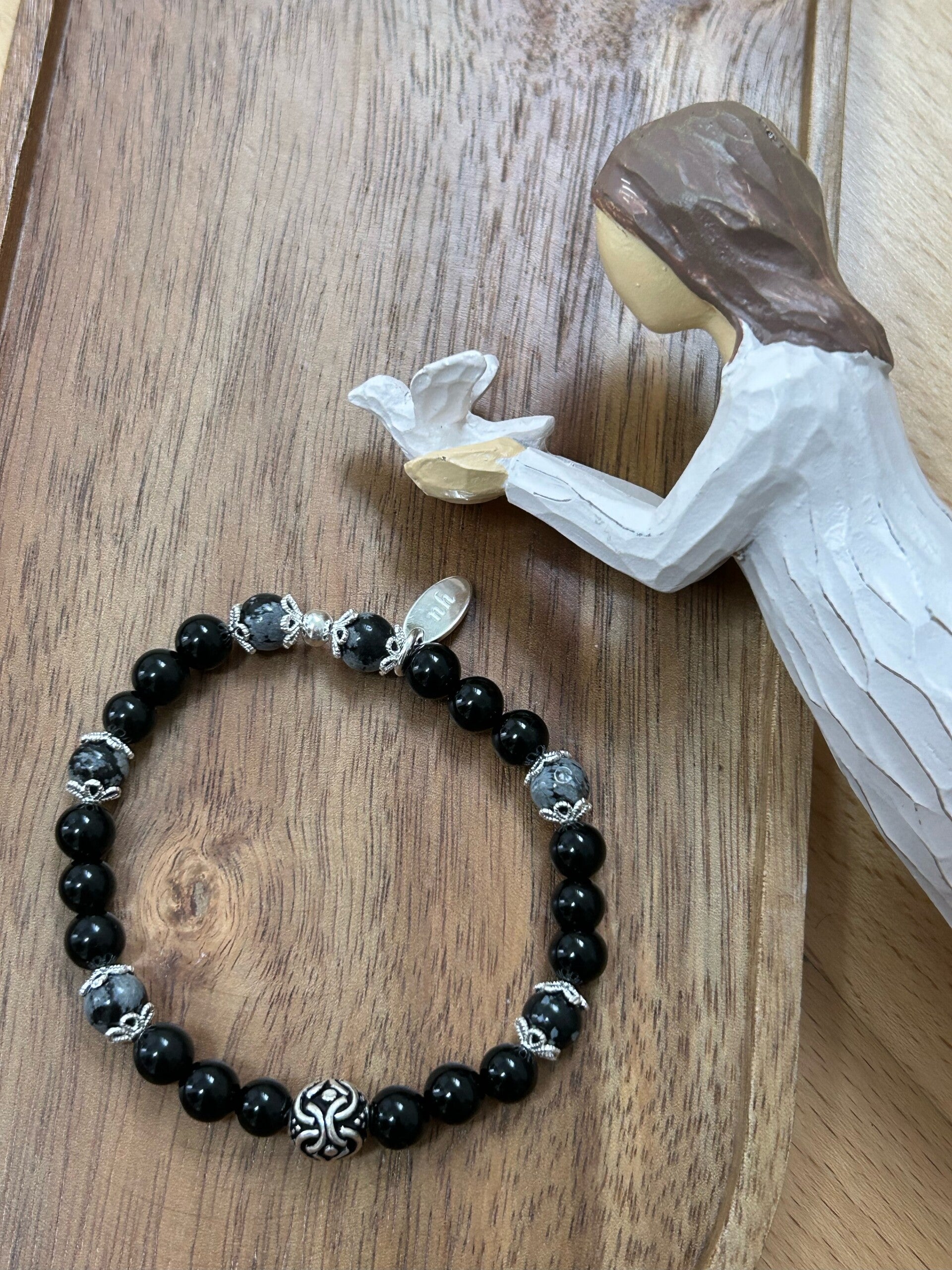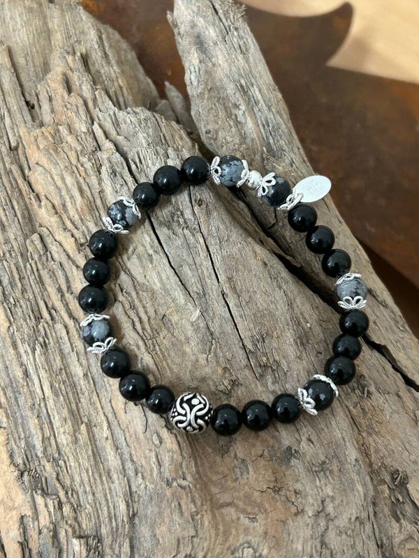 Obsidian Schneeflocke: schmerzlindernd bei rheumatischen Beschwerden; macht lebendig und spontan; hilft das innere Kind zu leben; hilft mit Verwirrung und Überraschungen umzugehen