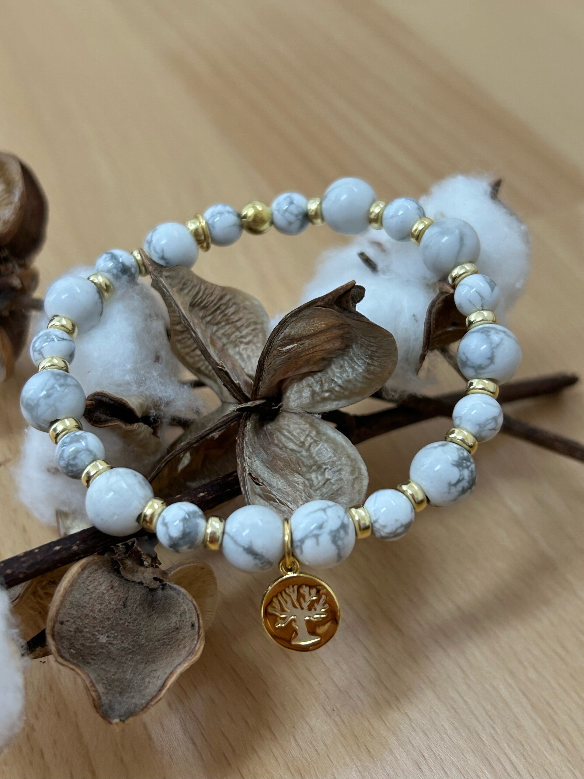 Howlith: kann entschlackend wirken, eine Diät unterstützen und regt die Entgiftung des Körpers an; gleicht den Säurehaushalt aus und kann Linderung bei Sodbrennen und Gallenkolik verschaffen; stärkt Knochen, Gelenke, Nägel, Zähne und Haare; kann Kopfschmerzen und Migräne lindern und den Gleichgewichtssinn verbessern; ist sehr erdend; bewahrt vor unüberlegten Gefühlsausbrüchen; wirkt entspannend und lässt einem gelassener fühlen, da er negative und schädliche Energien ableitet; verleiht einen tiefen und ruhigen Schlaf ohne schlechte Träume