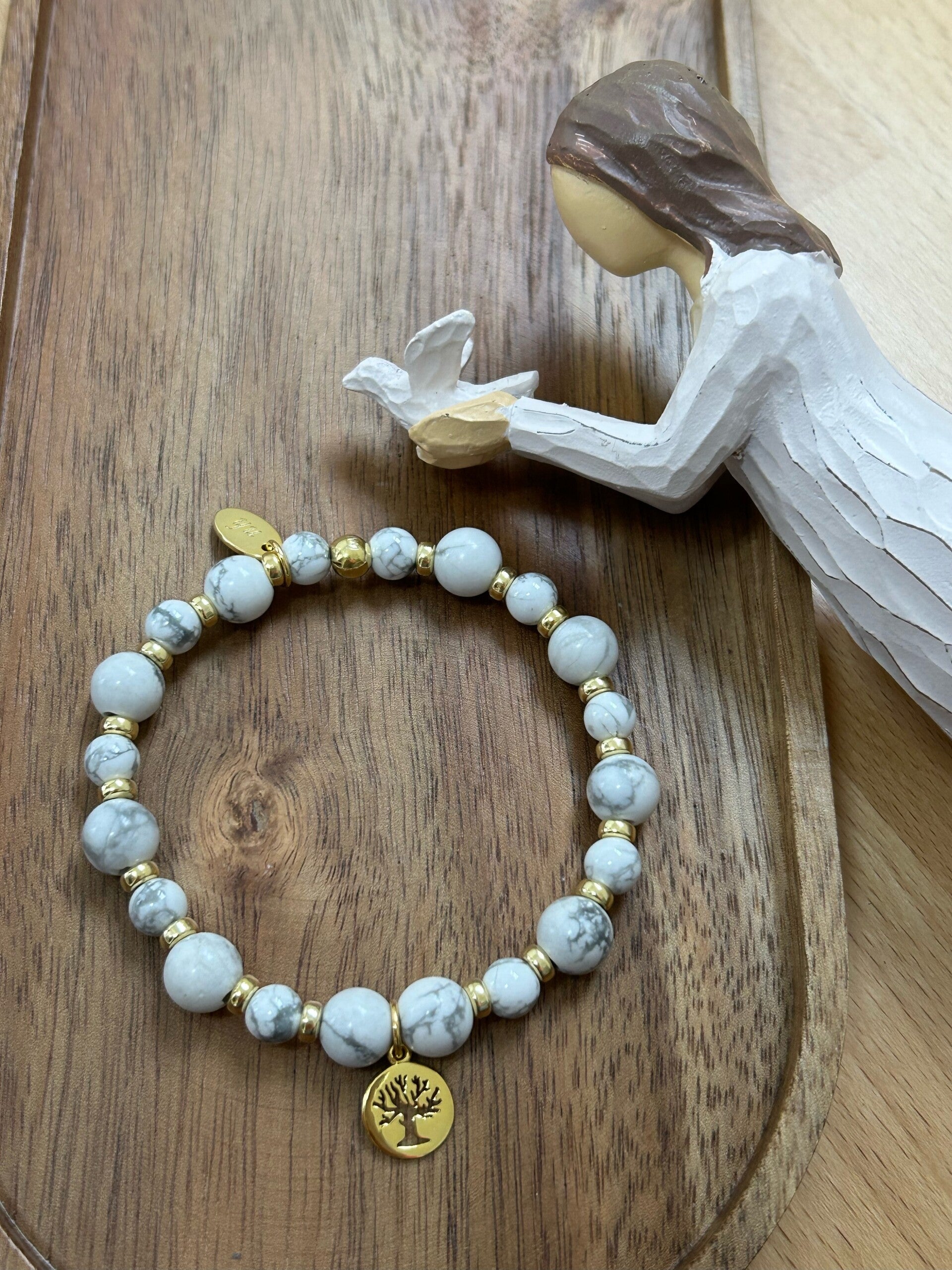 Hinweis: mit Stretch-Band; Silber 925 vergoldeter Anhänger "Lebensbaum" und Elemente; Kugeln 6 und 8mm