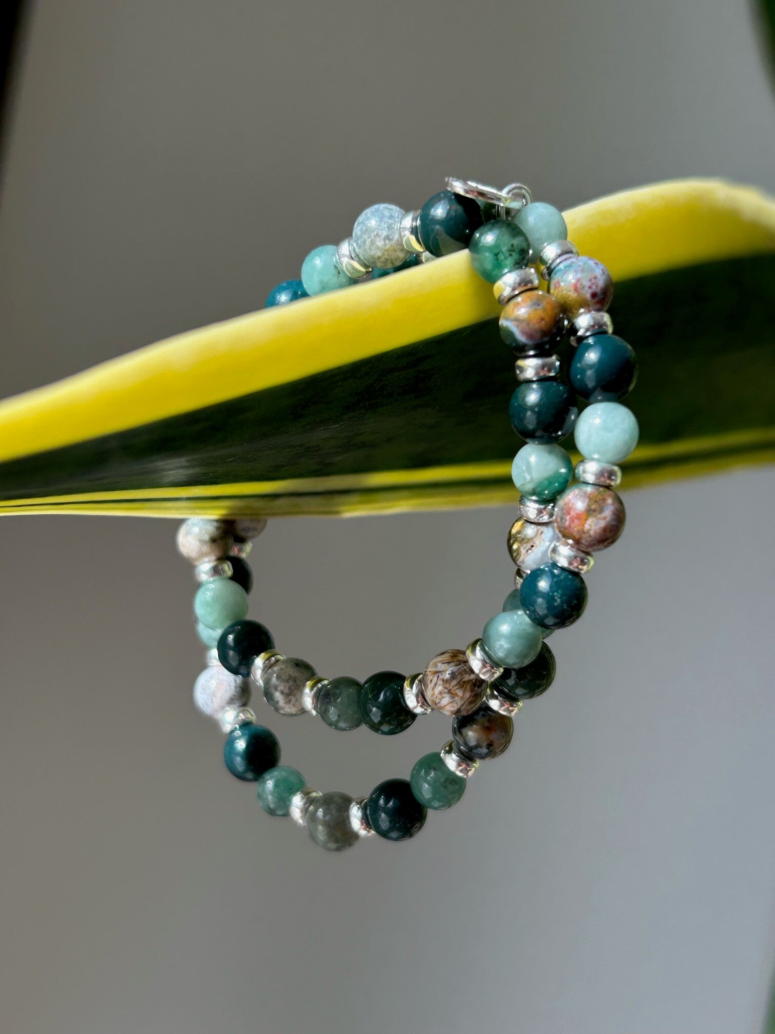 Heilsteine (Link zu Beschreibung und Wirkung): Heliotrop, Ozean-Achat, Smaragd (Beryll grün)