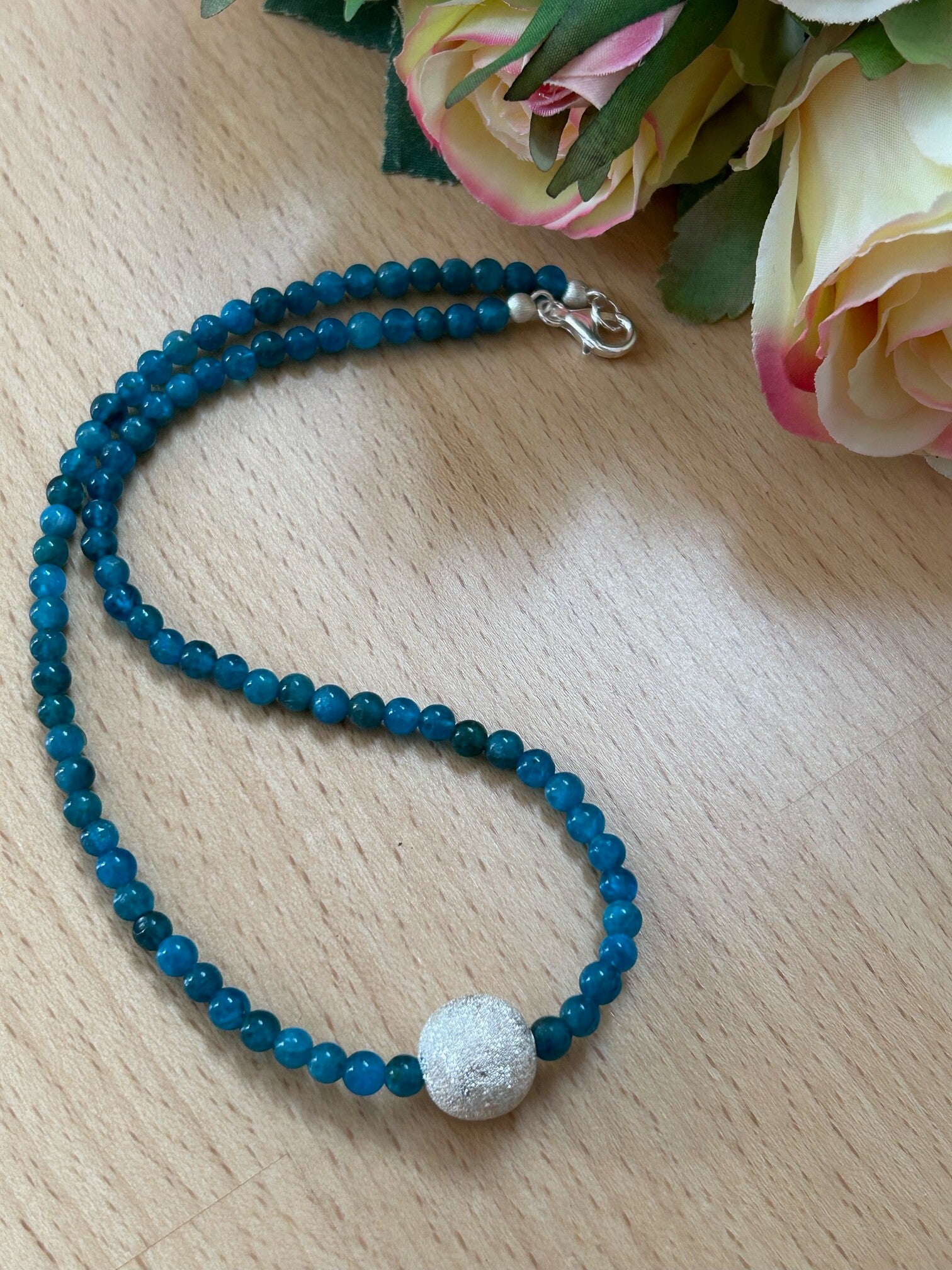 Länge auf diesem Bild: 42cm (Deine genaue Wunschlänge in den Kommentar eintragen und die entsprechende Preisklasse wählen); Silber 925 Kugel 14mm; Kugeln 4mm