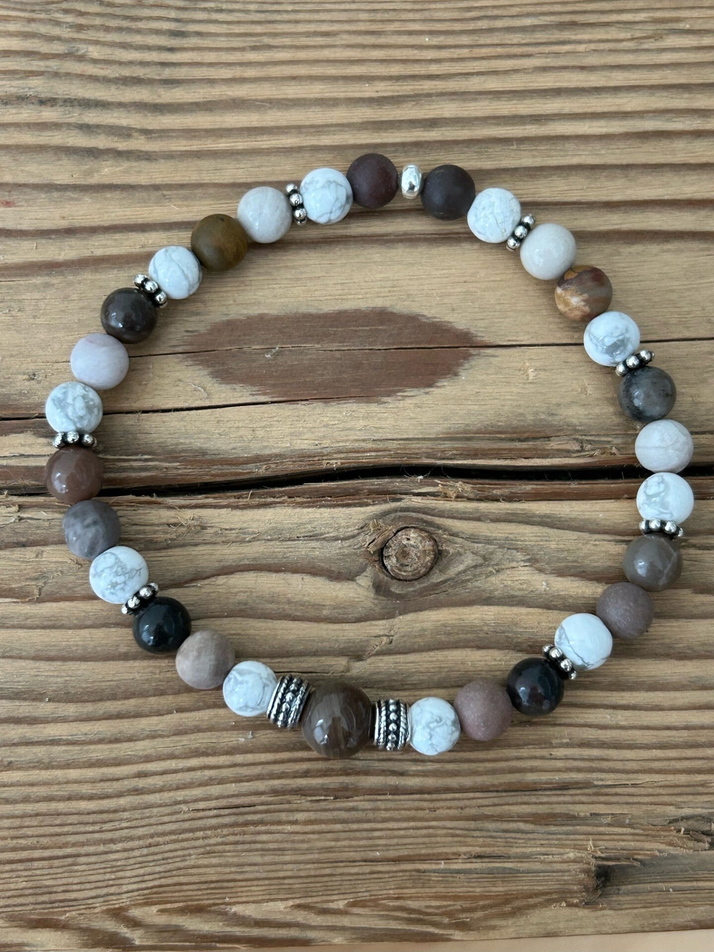 Hinweis: mit Stretch-Band; Silber 925 geschwärzte Elemente; Kugeln 6mm und 1 Kugel 8mm