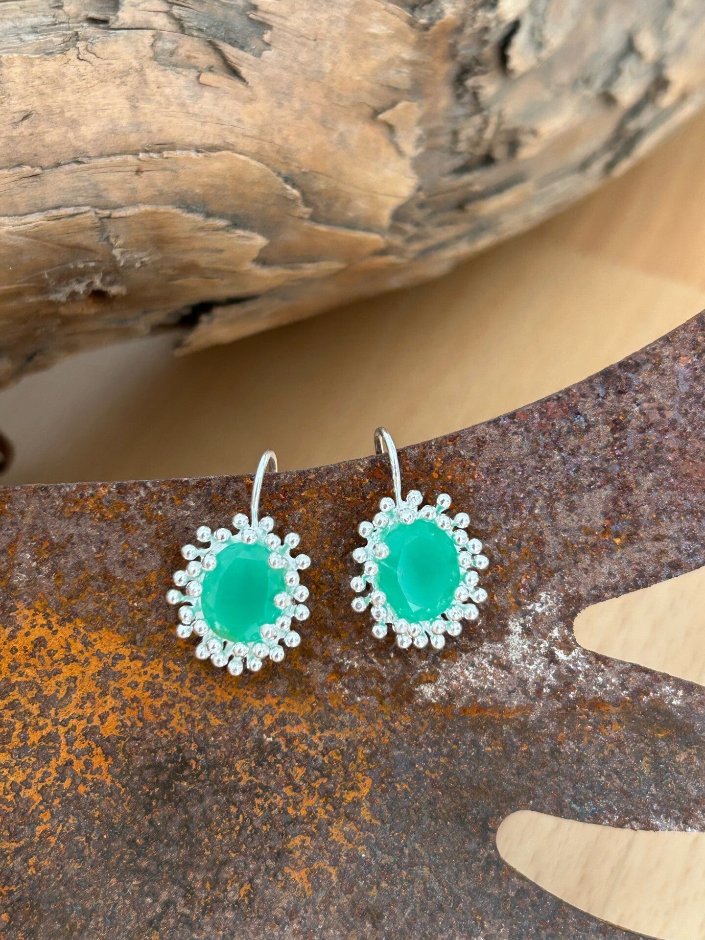 Chrysopras: regt die Entgiftung des Bindegewebes über die Nieren an; kann Übergewicht reduzieren; reduziert Ödeme und geschwollene Beine; bessert Krampfadern und Venenentzündung; lindert Hautallergien, Neurodermitis, Pilze und Warzen; wird bei Lebererkrankungen und Magengeschwüren eingesetzt; fördert die Fruchtbarkeit der Frau; wirkt krampflösend bei Menstruationsbeschwerden; lindert Hitzewallungen und Herzbeschwerden; wirkt blutdrucksenkend; senkt hohen Cholesterinwert im Blut; stoppt ständig wiederkehrende Albträume; hilft ängstlichen Kindern nachts durchzuschlafen, stärkt das Selbstvertrauen und das Urvertrauen; fördert Unabhängigkeit von äusserer Zuwendung und Bescheidenheit; lindert Anspannung bei innerer Unruhe; lässt bei Unzufriedenheit einen Ausgleich finden und stärkt Mitgefühl, Achtsamkeit und künstlerisches Empfinden