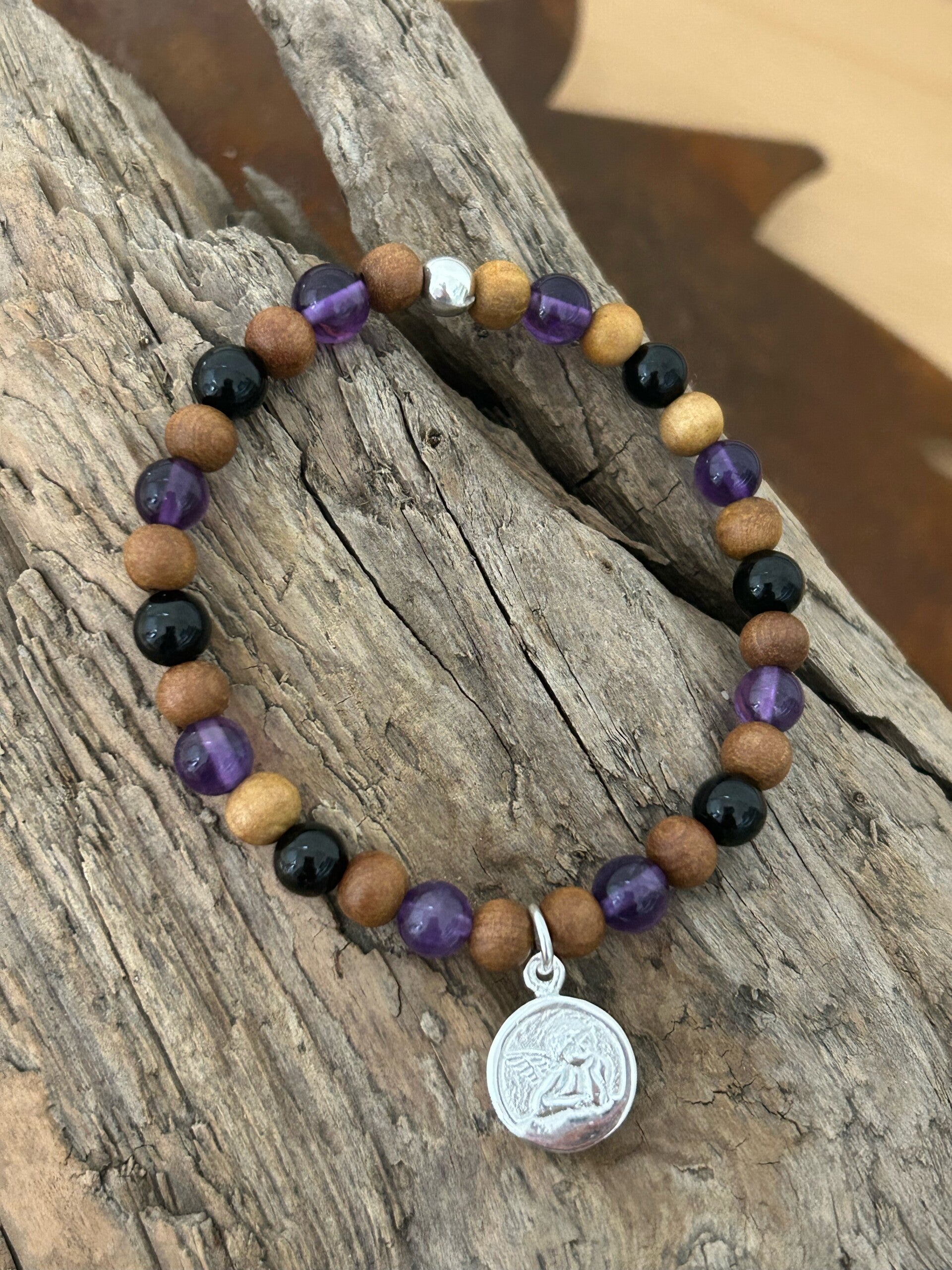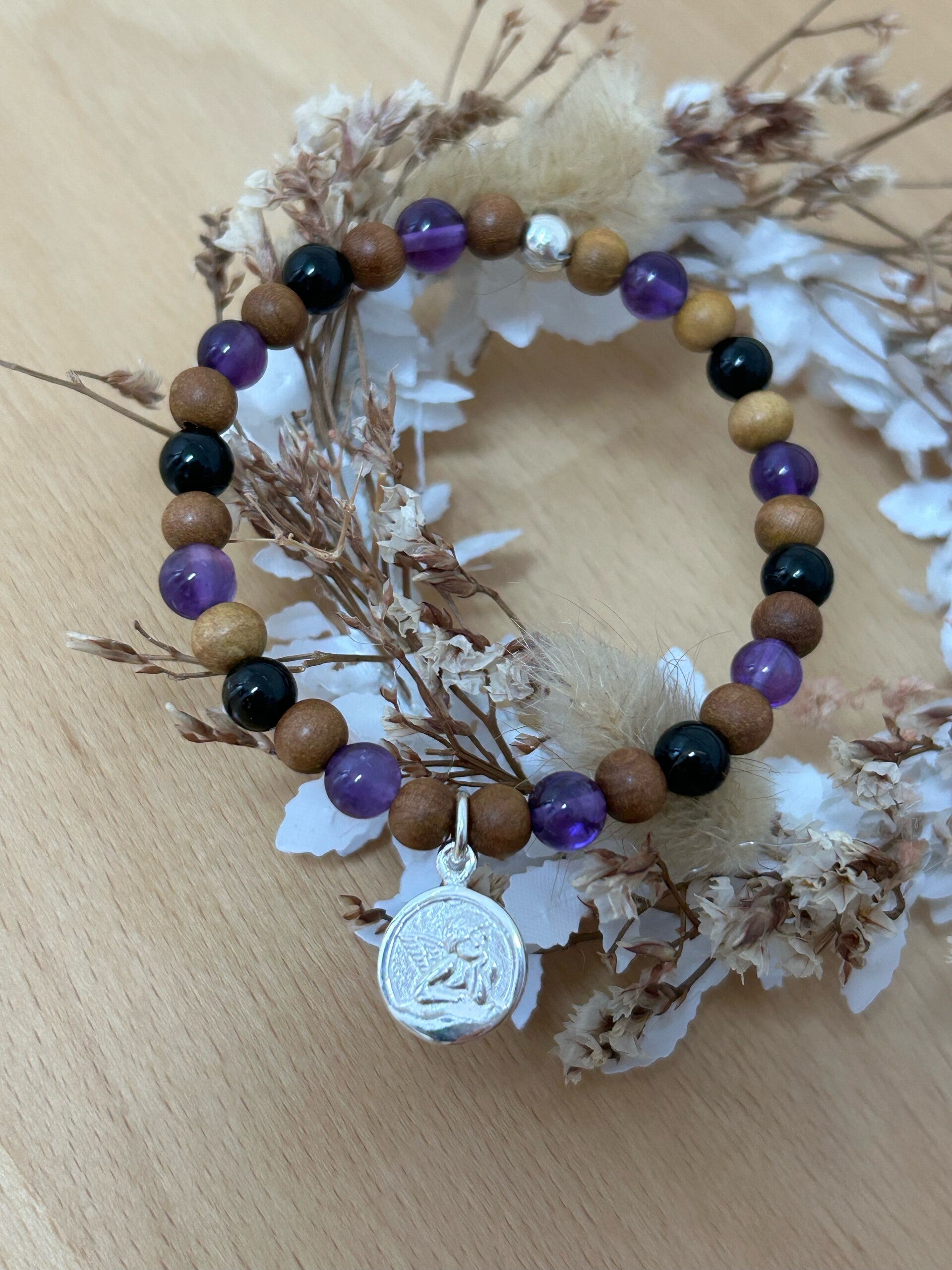 Hinweis: mit Stretch-Band; Silber 925 Anhänger "Schutzengel"; Sandelholzkugeln 6mm; Kugeln 6mm